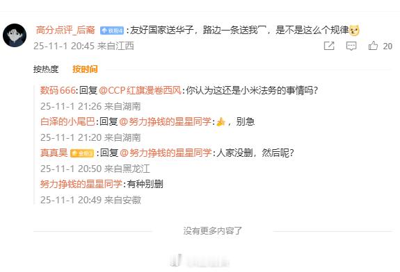 这个人的评论区不管理,好像已经不是单方面侮辱小米的问题了,有种别删。
