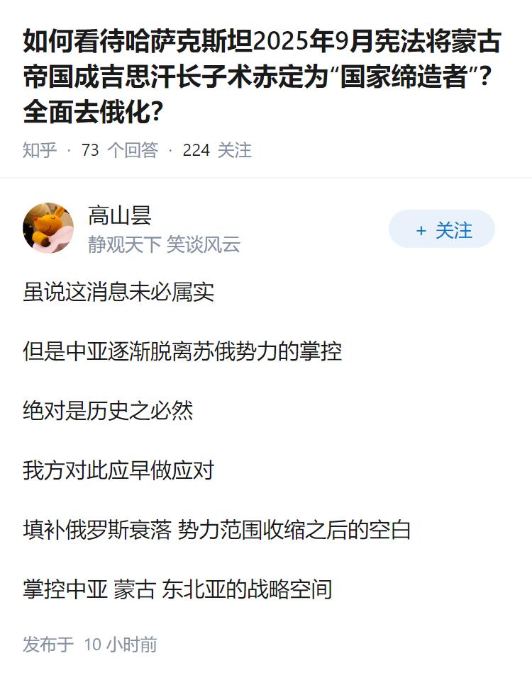 如何看待哈萨克斯坦2025年9月宪法将蒙古帝国成吉思汗长子术赤定为“国家缔造者”?全面去俄化?