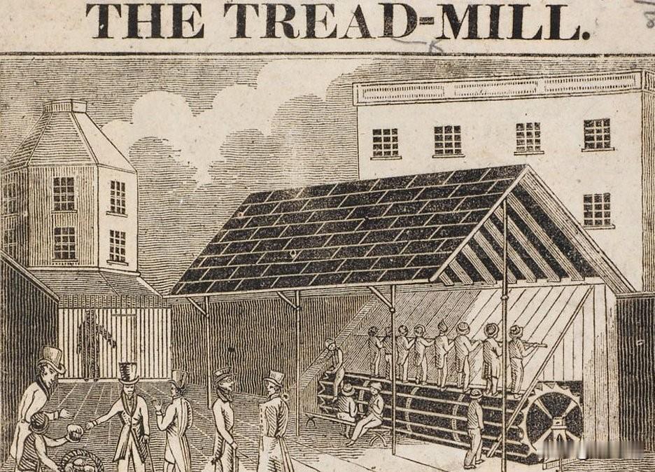 1895年,伦敦彭顿维尔监狱的一台刑罚跑步机。 在19世纪的英国监狱里,跑步机是一种常见的苦役形式。它是一个巨大的旋转轮,囚犯必须不停地踩在上面,就像攀登一座永无止境的阶梯。它的官方目的是培养纪律并让囚犯有事可做,但除了摧毁意志和强制服从之外,它几乎没有任何实际价值。 可以通过拧紧或拧松调节装置(实际上就是拧螺丝)来调节跑步机的阻力,从而使工作变得更难或更轻松。负责管理这项工作并监督囚犯的狱警被非正式地称为“螺丝”。这个词带有控制和严厉的意味,与维多利亚时代监狱阴森的环境相符。 随着时间的推移,“螺丝”一词进入了更广泛的监狱俚语,指代任何执行纪律的官员或狱警,即使在今天的英国和英联邦英语中,这个词仍然带有这种含义。