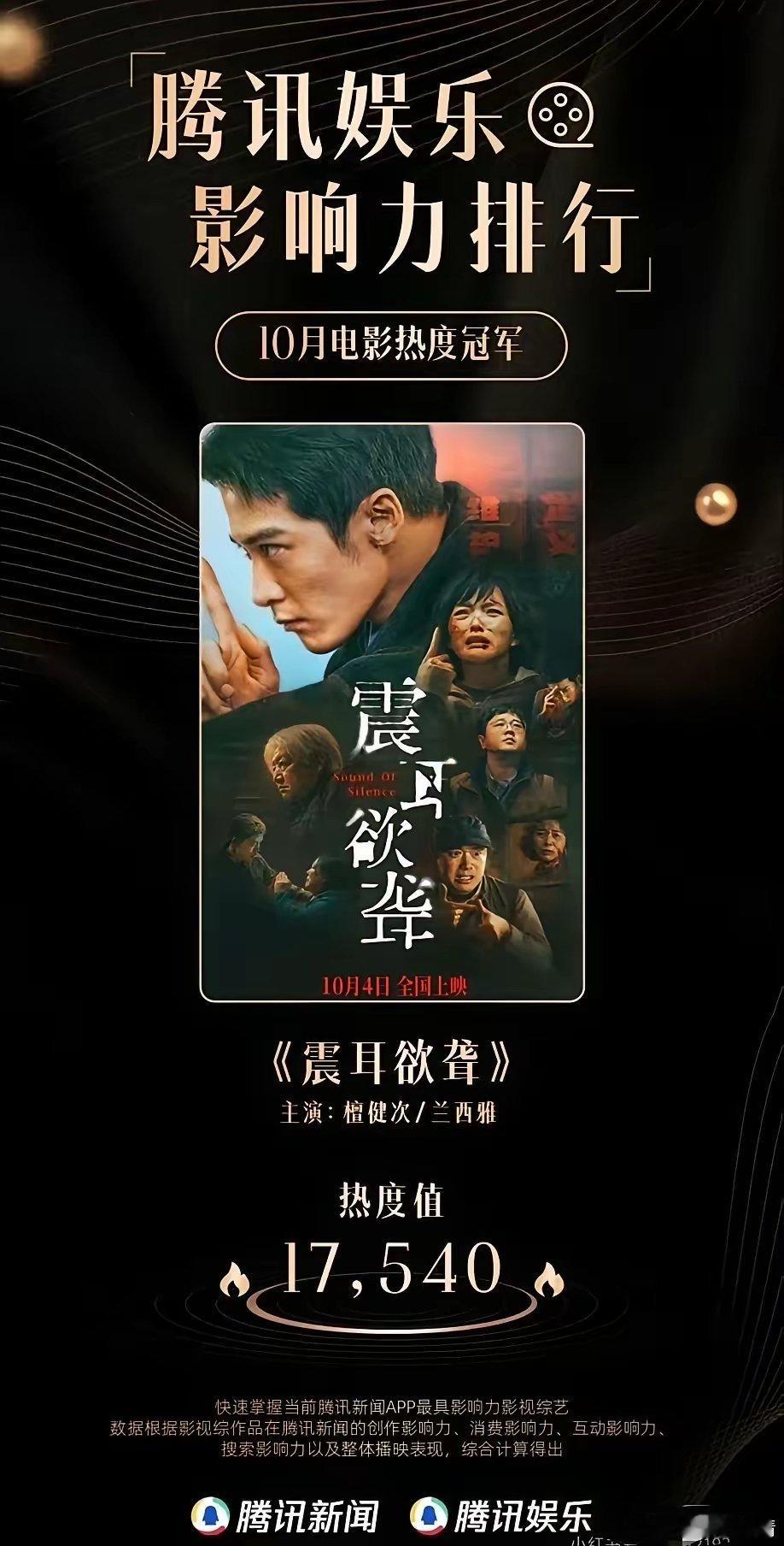 另外檀健次饰演的李淇分别获得10月电影热度冠军和10月电影角色热度冠军,双冠加冕,足见电影口碑、角色完成度与影迷认可度!