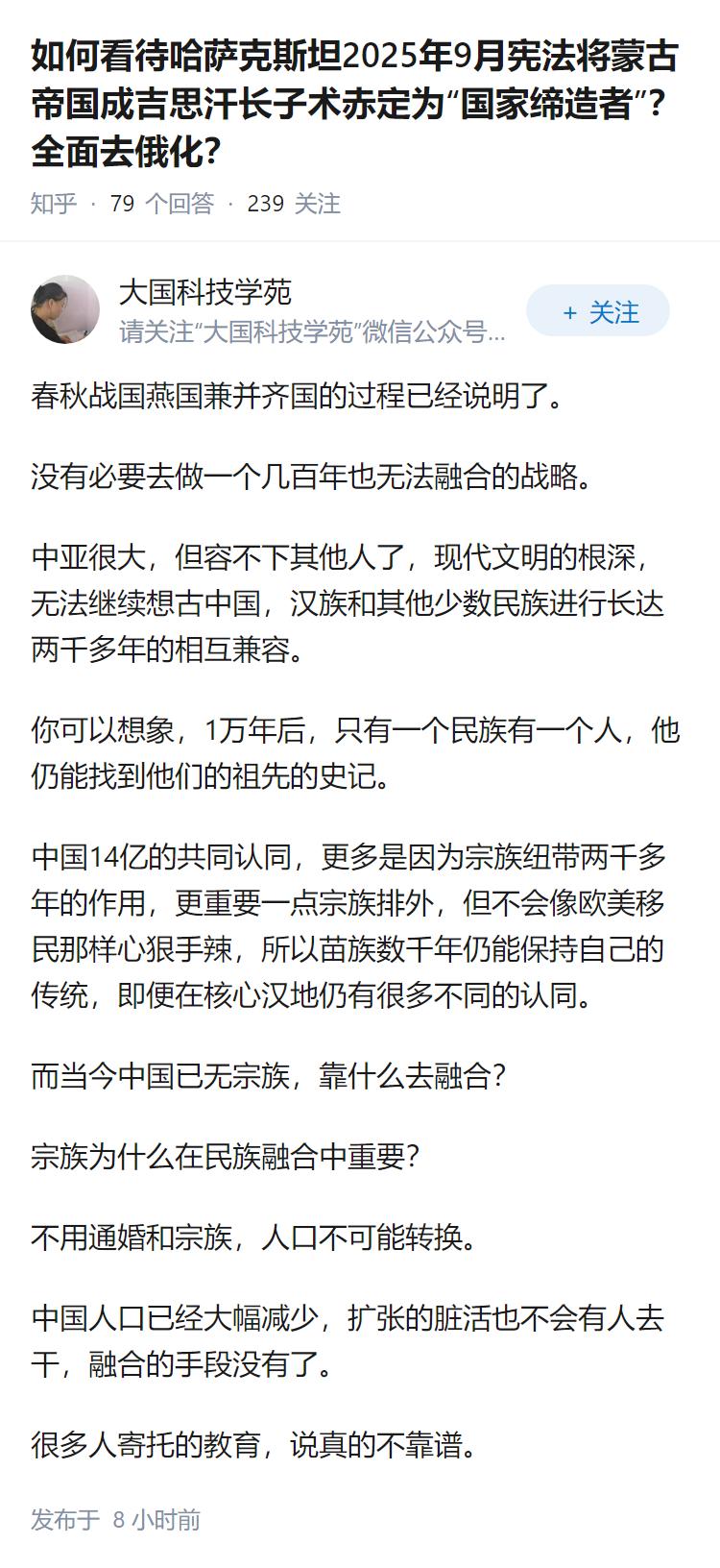 如何看待哈萨克斯坦2025年9月宪法将蒙古帝国成吉思汗长子术赤定为“国家缔造者”?全面去俄化?