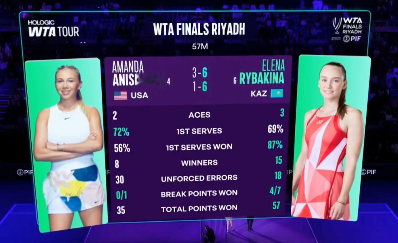 残忍之夜!这样的结果意外吗?利雅得WTA年终总决赛单打赛果: 斯瓦泰克6-1/6-2击败凯斯,比赛用时1小时。 莱巴金娜6-3/6-1横扫阿尼西莫娃。比赛耗时57分钟。