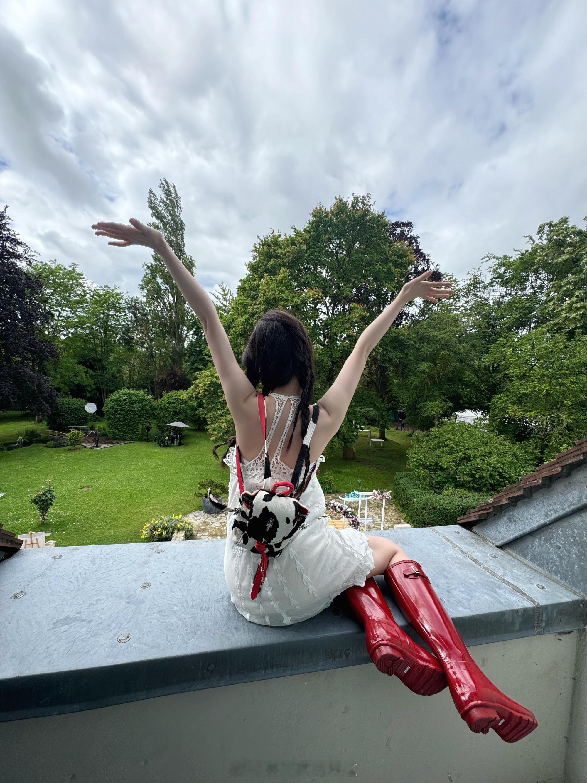 优雅漫步,时尚黑裙与高跟鞋的完美搭配