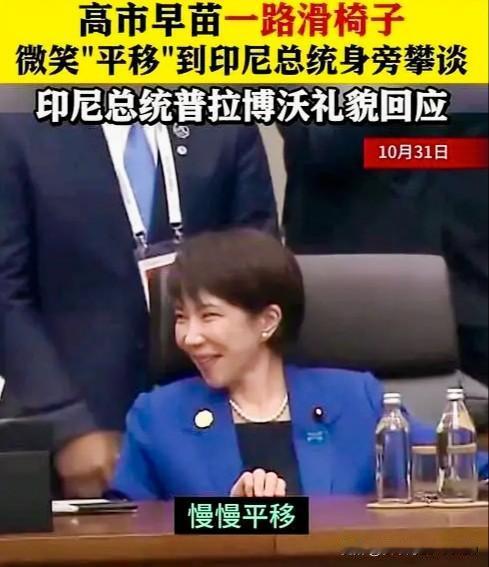 1961年出生的高市早苗,现年已经六十四周岁了,从年龄上来说,早过了花甲之年,从职位上来说,是日本历史上第一位女首相。无论如何都应该“举止得体、落落大方”。可是让人想不到的是,这刚当上首相,却在接见特朗普、APEC会议上出尽了“洋相”。 一、在特朗普身旁小鸟依人般偎依,神情中流露出不合身份的谄媚; 二、看印尼总统时眼神迷离,将座椅滑近对方搭话,尽显得轻浮失态; 三、主动搂住智利总统博里奇的肩膀进行近距离交谈,逾越了外交礼仪的界限。 说真的,这些举动不仅显得自己不够稳重,更丢了日本的脸。作为一国领导人,你代表的是整个国家的形象,外交场上不是用来表演个人交际的。 高市早苗不是号称“日本保守派”吗?真看不出她到底哪里“保守”啦? (图片来自网络截图)