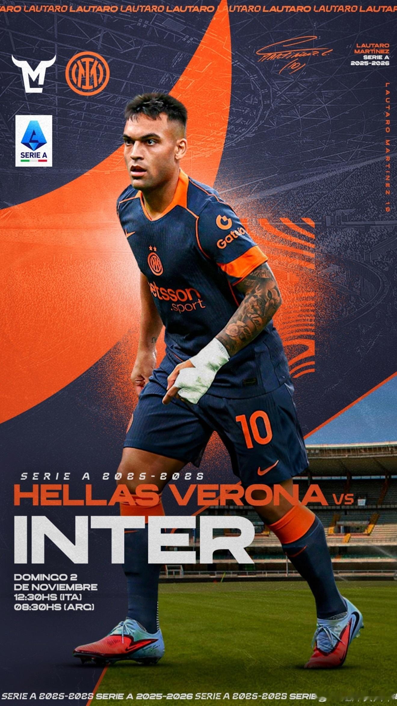 维罗纳vs国际米兰,蓝黑军团队长劳塔罗发布赛前海报!💙🖤💪