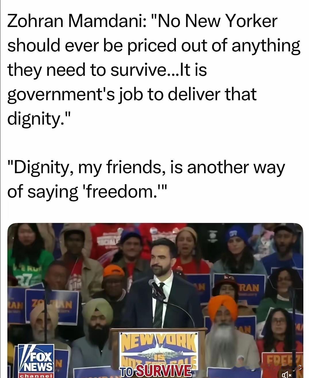 民调显示,纽约市长候选人Mamdani(曼达尼 )获胜的概率,目前市场预测是88-92% ​​​ Obama 致电Mamdani,称赞他的纽约市长竞选工作做得好。 Mamdani的竞选纲领是 要向1%的富豪和大公司(年收入100万美元)加征税款,以此来为6周至5岁儿童提供免费托儿服务,免费公交,发放食物补贴等,设立政府运营的平价杂货店。 他提出,“要让政府服务普通人,而非富人”! 但他的通过向富豪和大公司加征税款,以实现幼儿园和公交免费的竞选纲领遭到富人和大公司的抵制,众多选民也对此持质疑态度。 曼达尼,33岁,乌干达出生的印度裔穆斯林,2018年入籍美国。曾任说唱歌手、人权律师,2020年当选纽约州众议员,此前从事住房维权工作。 在巴以问题上,他强烈批评以色列,声称若当选市长将逮捕到访的内塔尼亚胡。