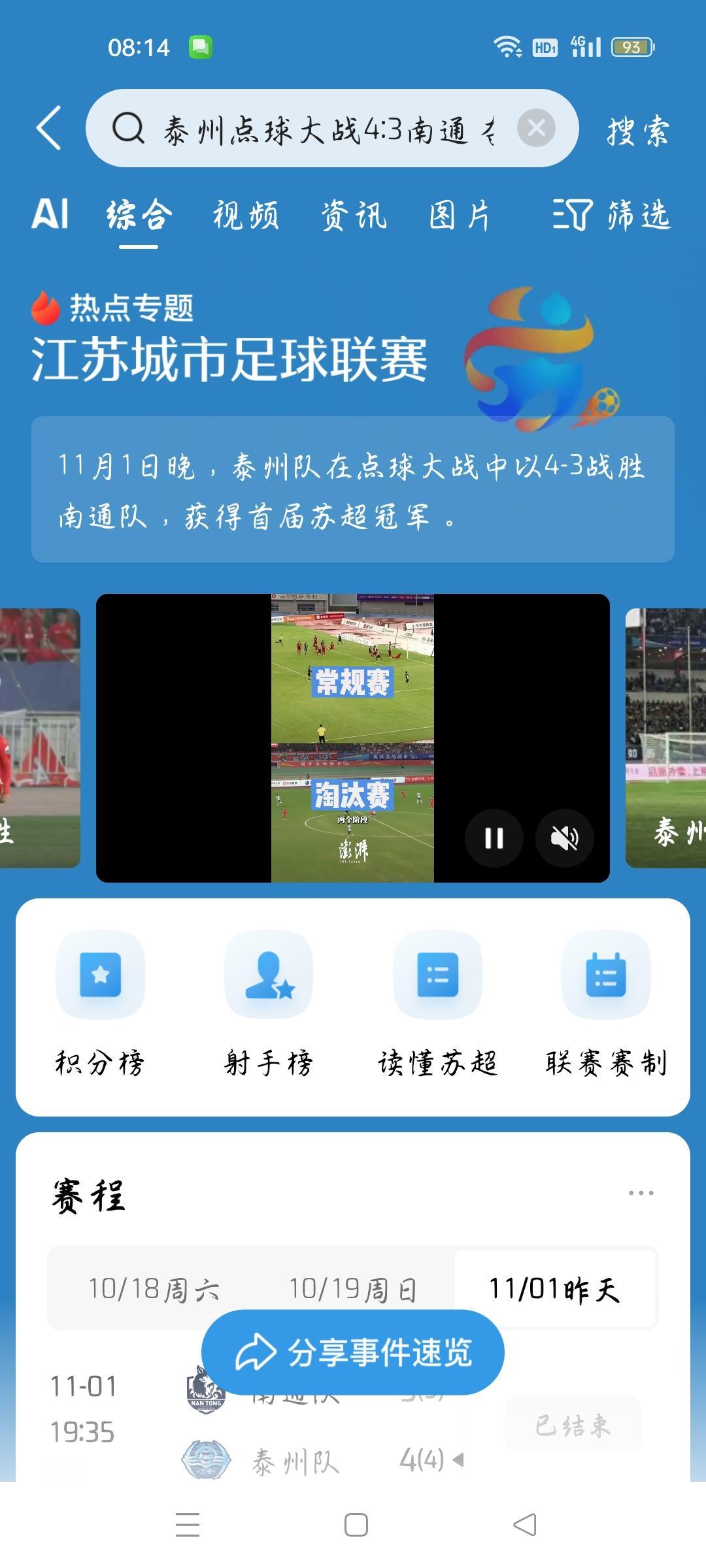 泰州队大战南通队获苏超冠军,我想说 据相关网络报道,11月1日晚,苏超决赛在泰州队与南通队之间决战,泰州队在点球大战中以4_3战胜南通队,获得了苏超冠军。个人认为,不管谁得冠军,都值得祝贺。决赛结束,意味着几个月红红火火的苏超结束,苏超为什么能够成功?苏超之所以引人关注,个人认为,相关部门应该认真总结,希望以后多一些像苏超的比赛,多让球迷和运动员参与,让人民群众的业余生活更加丰富多彩。各位条友觉得呢?