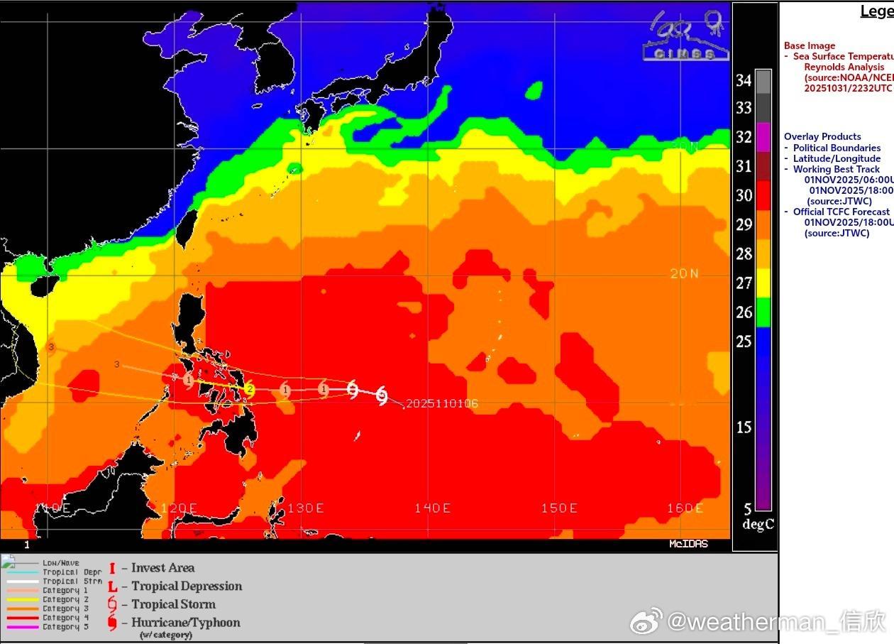 台风海鸥 昨晚到今晨,海鸥不断增强,中央气象台将其强度评价提升至强热带风暴级。未来在登陆菲律宾前,持续30℃以上高海温,叠加弱垂直风切变,利于海鸥继续增强。登陆菲律宾前有可能达到强台风级。穿过菲律宾时强度有所减弱,进入南海再增强。目前路径预报分歧不大,先登陆菲律宾再去越南中部登陆。不会登陆我国陆地,但5-7日要警惕台风给海南三沙制造风雨。