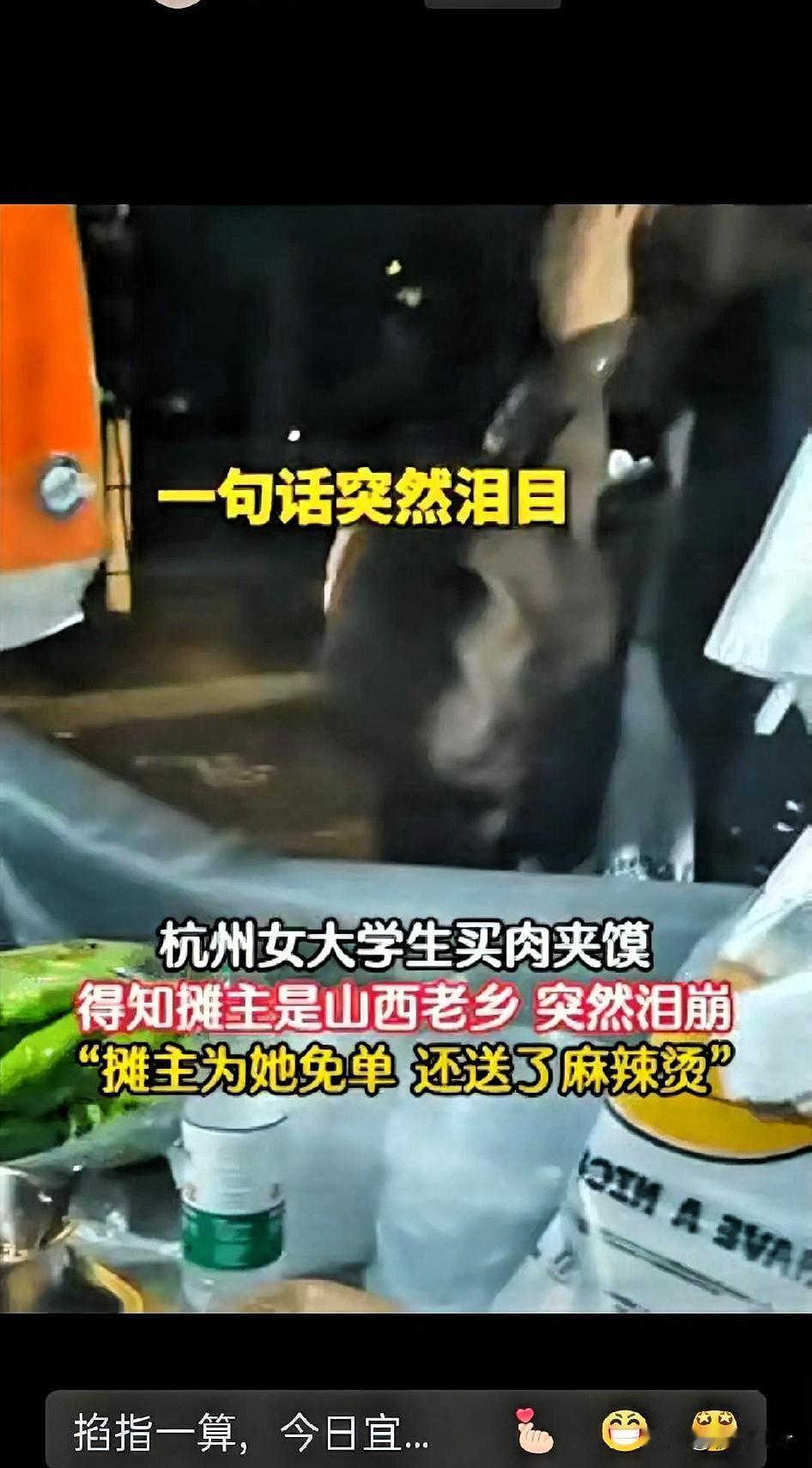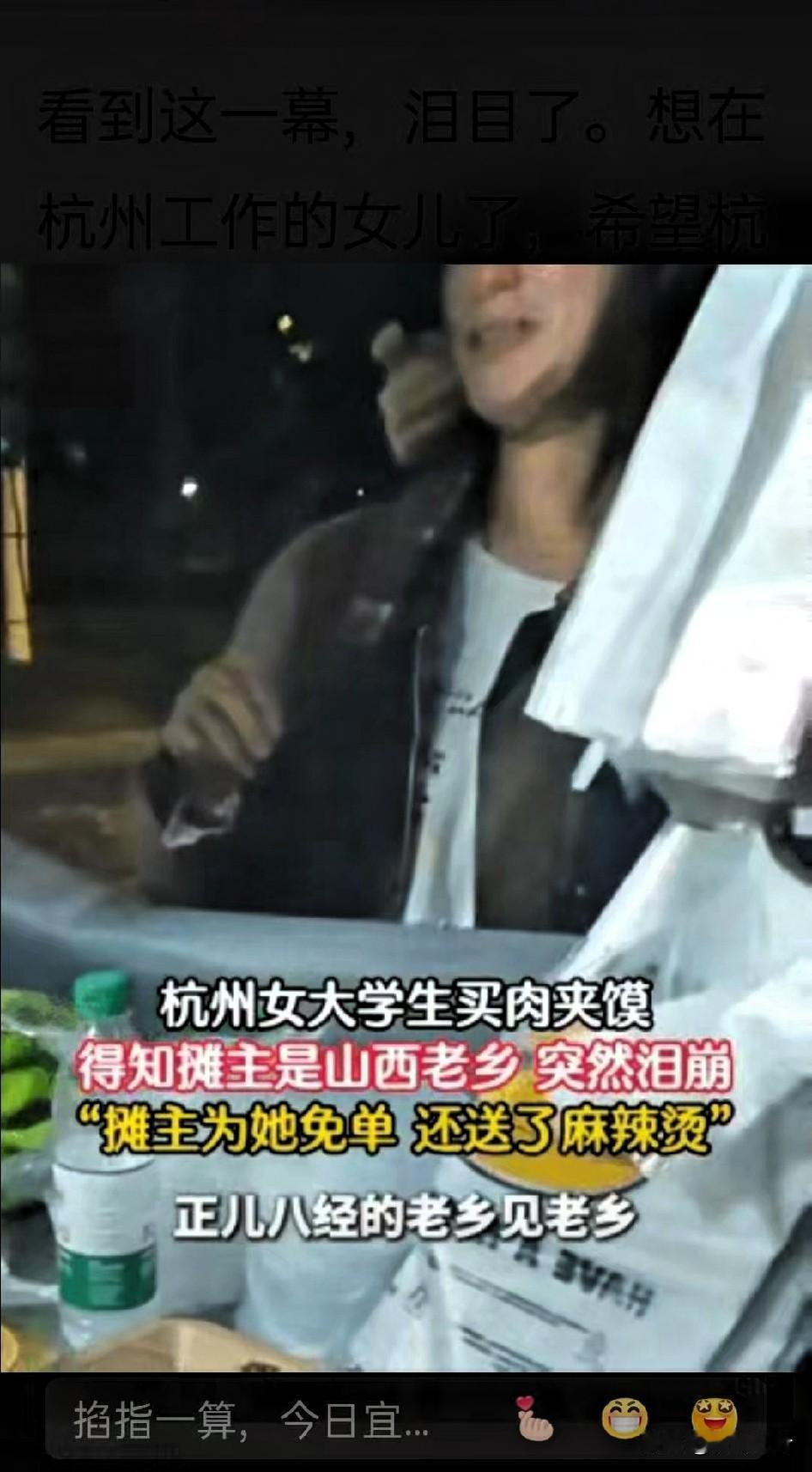 杭州,一女大学生从学校步行4公里去买山西运城的馍,结果被卖馍的老乡老板一句“国庆没回家吗”问得当场掉眼泪,这视频刷到我眼眶都热了! 她刚到杭州没俩月,千公里外的家、吃不惯的甜口菜,早把初来的新鲜感磨没了。看着同学拎着行李回家过节,自己只能在宿舍硬扛着想家的劲儿,哪成想蹲在路边买馍,还能撞上山西老乡,那句随口的关心,像根软刺似的,一下戳破了所有假装的坚强。 老板也是实在人,手里的面团还没揉完就赶紧停下,一边递纸巾一边说“想家了就常来,热馍管够”,末了不仅多塞了个刚出锅的馍,还端来碗滚烫的麻辣烫——这哪是吃的啊,是异乡里突然冒出来的家乡温度,一口下去,暖得人鼻子直发酸。 评论区全是游子的共鸣,有人说山西娃难,老家机会少,只能背井离乡去外地拼,想回又回不去;有人说自己在外地看到晋牌车,都忍不住多看两眼,就盼着能听句家乡话。其实我们在外闯,哪是图多风光啊,不过就是盼着这点“熟悉的小念想”,哪怕是一口老家的味道、一句乡音,都能把攒了好久的委屈和想家的劲儿散掉大半。 你在外地有没有过这样的瞬间?可能是一句简单的话、一口熟悉的味,甚至是个像老家的街角,就让你突然红了眼