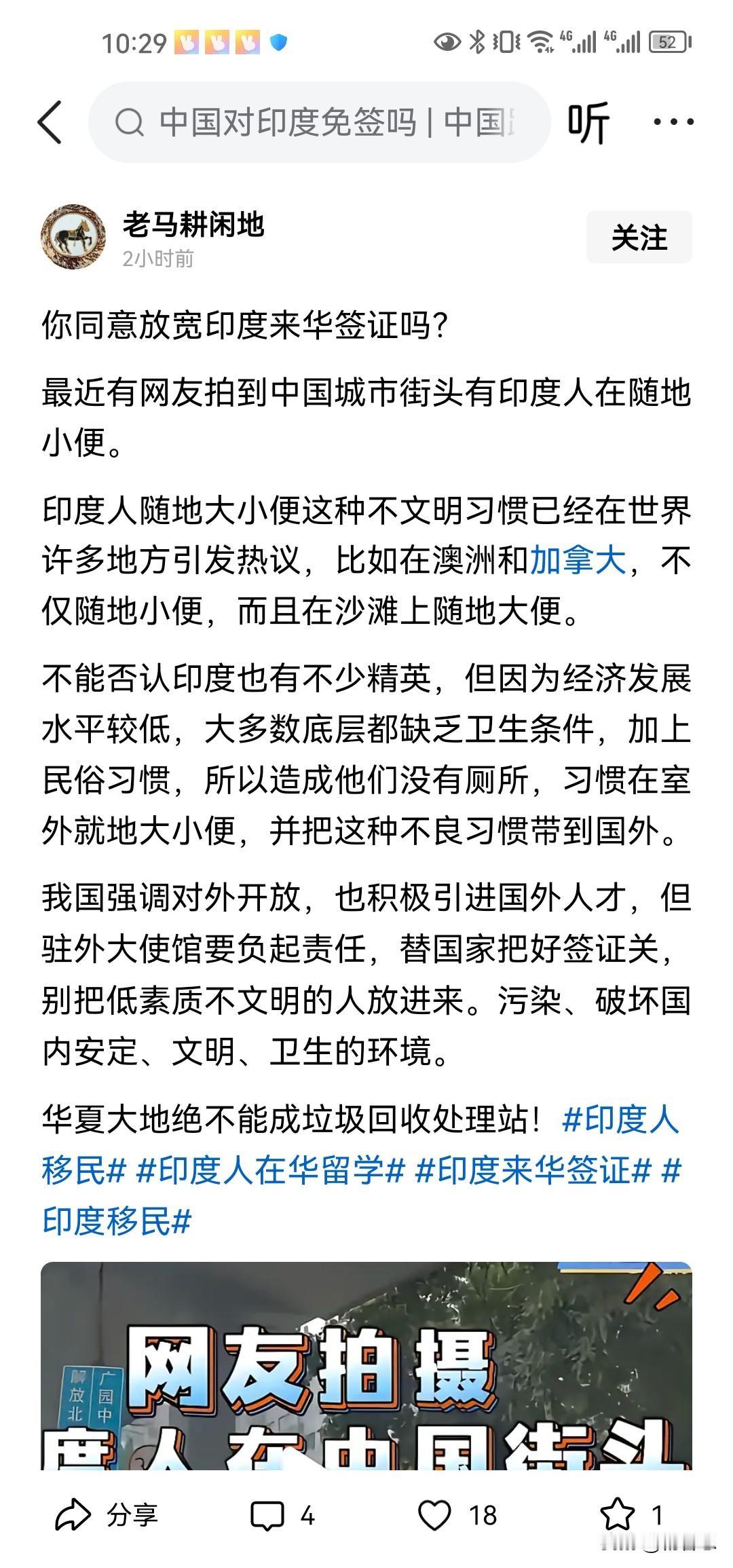 在中国的印度人越来越多了,有中国网友拍到印度人在中国随地大小便,他们把这个陋习也带到了中国,他们是走到哪里拉到哪里。在中国的印度人,一部分是过来穷游的,这部分人没有钱,为什么把他们签过来?令人不可思议?这一点大使馆有没有做好功课。一部分是留学生啊,这个留学生每年都新增加超过2000多人,既然大学生禁招不了,我们要控制数量,只准他们学习中国的历史人文商业,医学可以学,但航天军工、科技、物理、化学,这些就不应该让他们读。他们学到之后,用我们的技术造出武器对付中国,他们制造产品也会增加我们的海外竞争压力。至于那些过来经商的,要他们合法合规,要一手交钱一手交货。不要给他们技术。