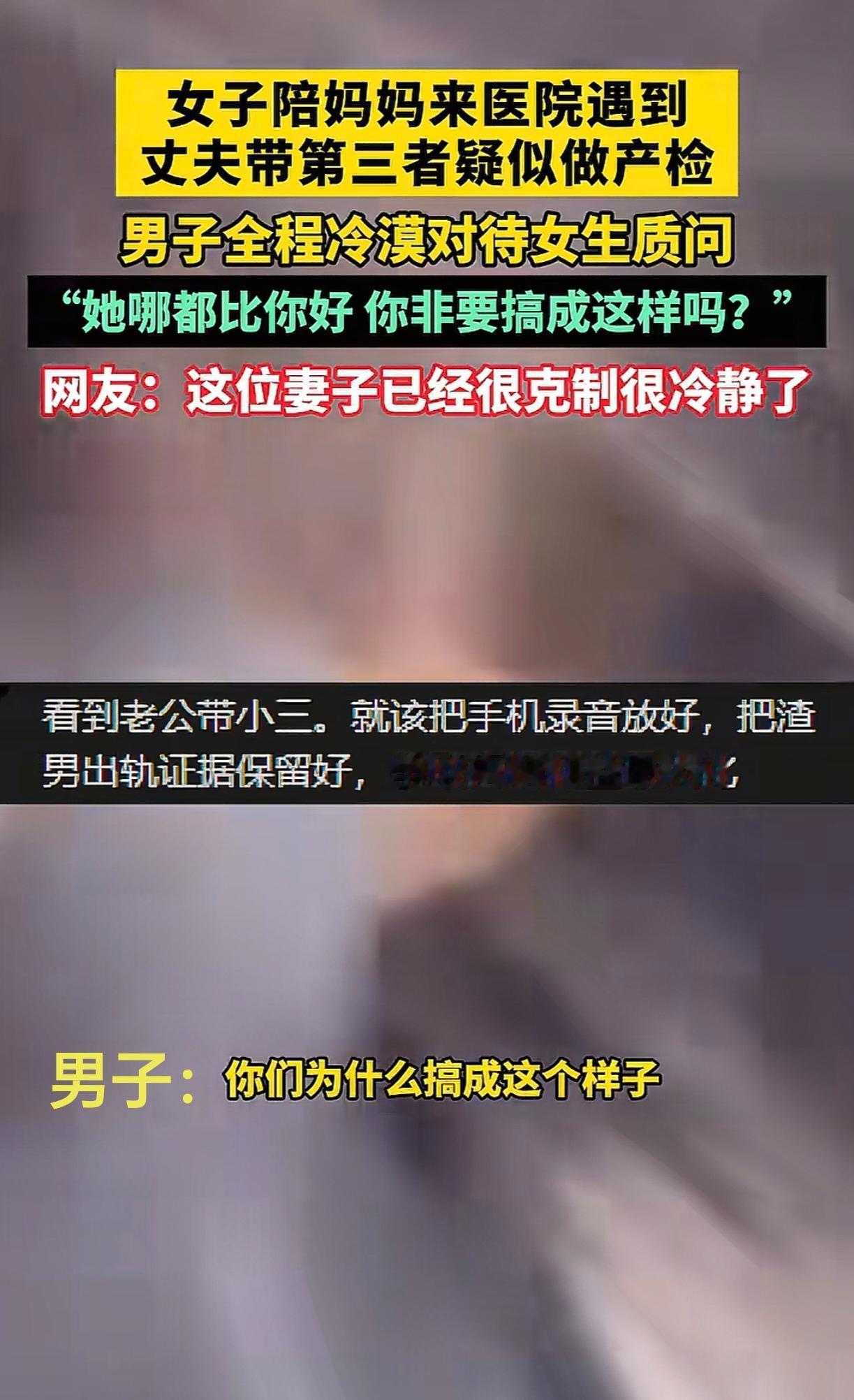 一句她那都比你好,真是扎人心啊。一女子陪母亲去医院检查,医院门口碰到丈夫陪着小三产检。女子追上去,简单直接的问怀上了是吗?男子没有一丝愧疚,语气很强硬:怀上了,怎么了?并全程维护第三者,说:她哪都比你好,非要搞成这样? 据说男子还是一个律师,实在让人看不懂,一点道德底线都没有。既然不爱了,就不能先离婚再找吗,非要同时吃在碗里,看着锅里[what]。婚姻 出轨