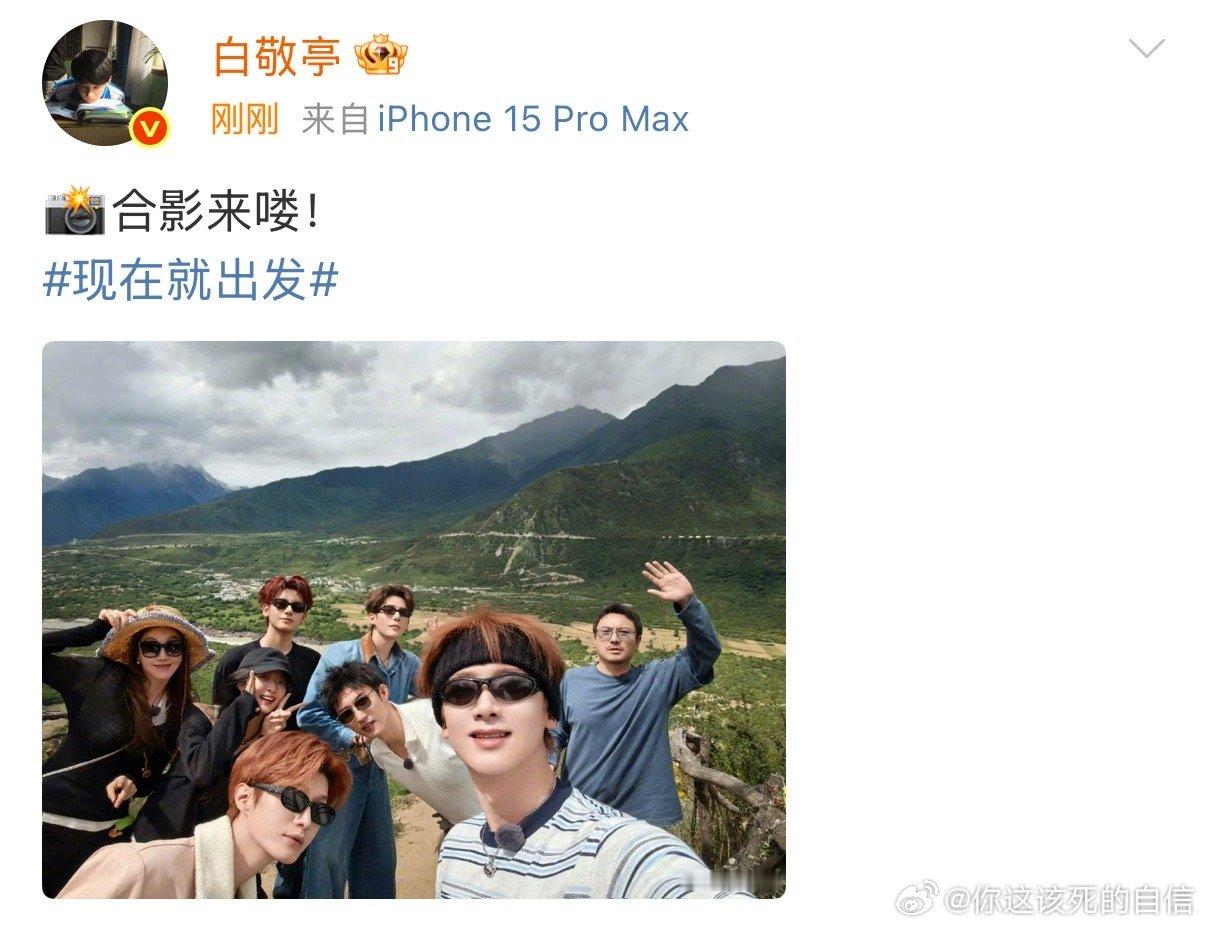 白敬亭晒出发团大合影白敬亭晒出发团全员合影老公级别