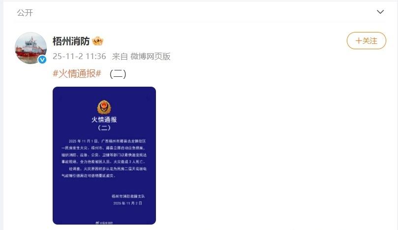官方再通报民房火灾致3人死亡【广西梧州一民房发生火灾致3人死亡,官方再通报:初步