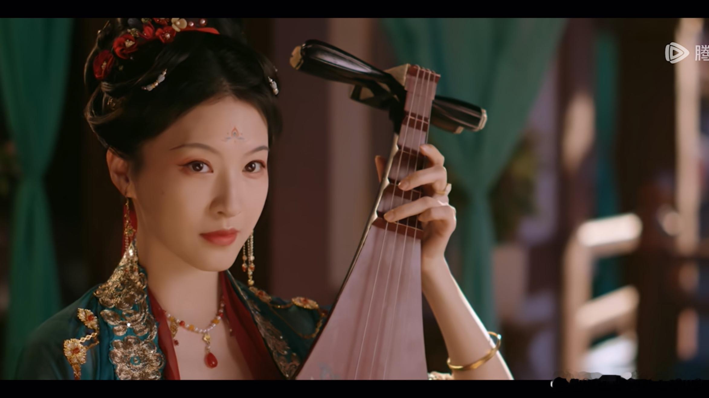 宋茜 《山河枕》楚瑜☽ 剧照-假扮舞姬-红衣+特别面纱+花钿+珍珠妆