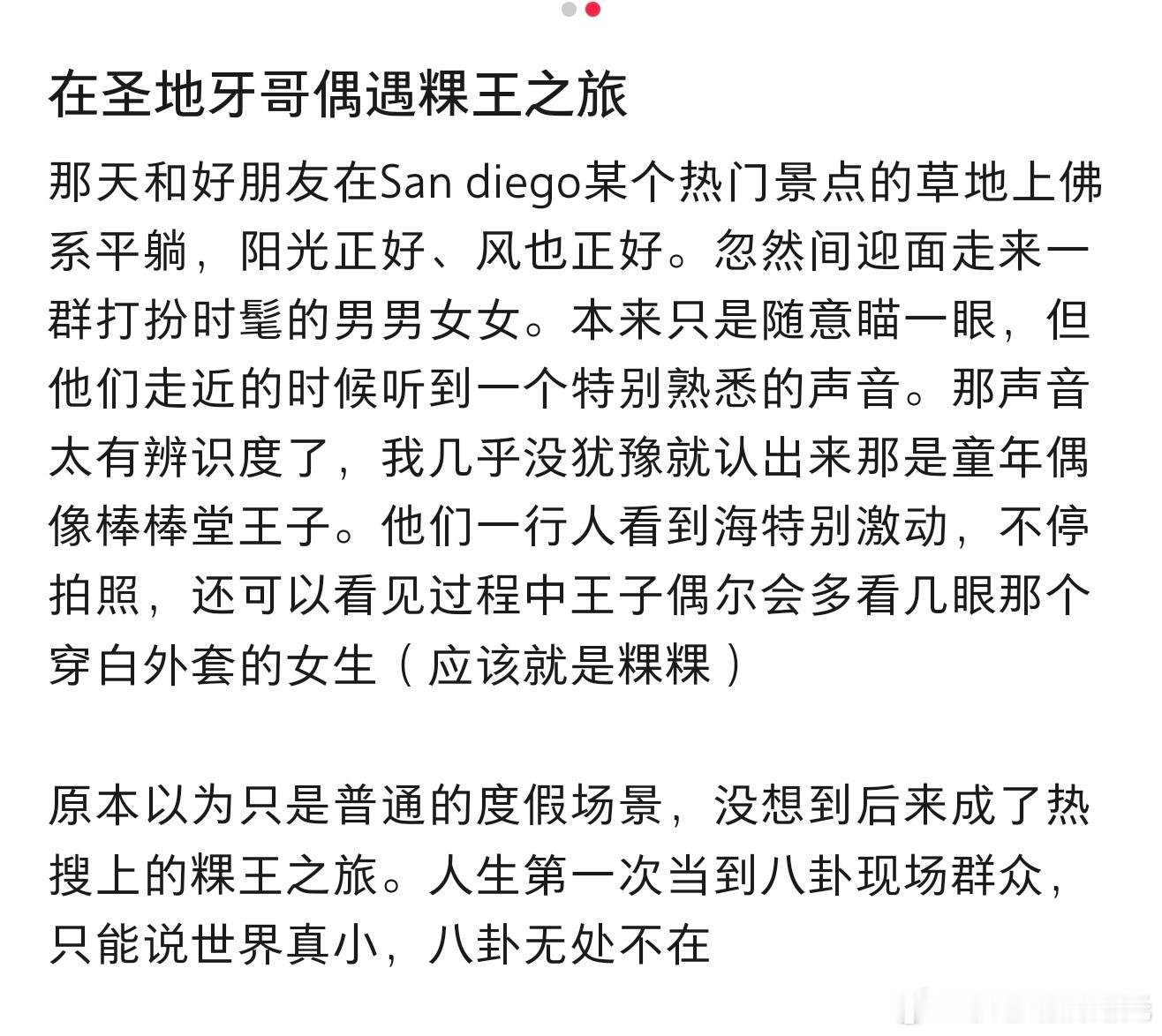 网友3月底美国偶遇王子粿粿王子粿粿3月底美国度假被偶遇世界太小了,有网友今年3