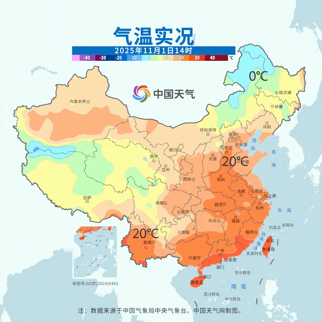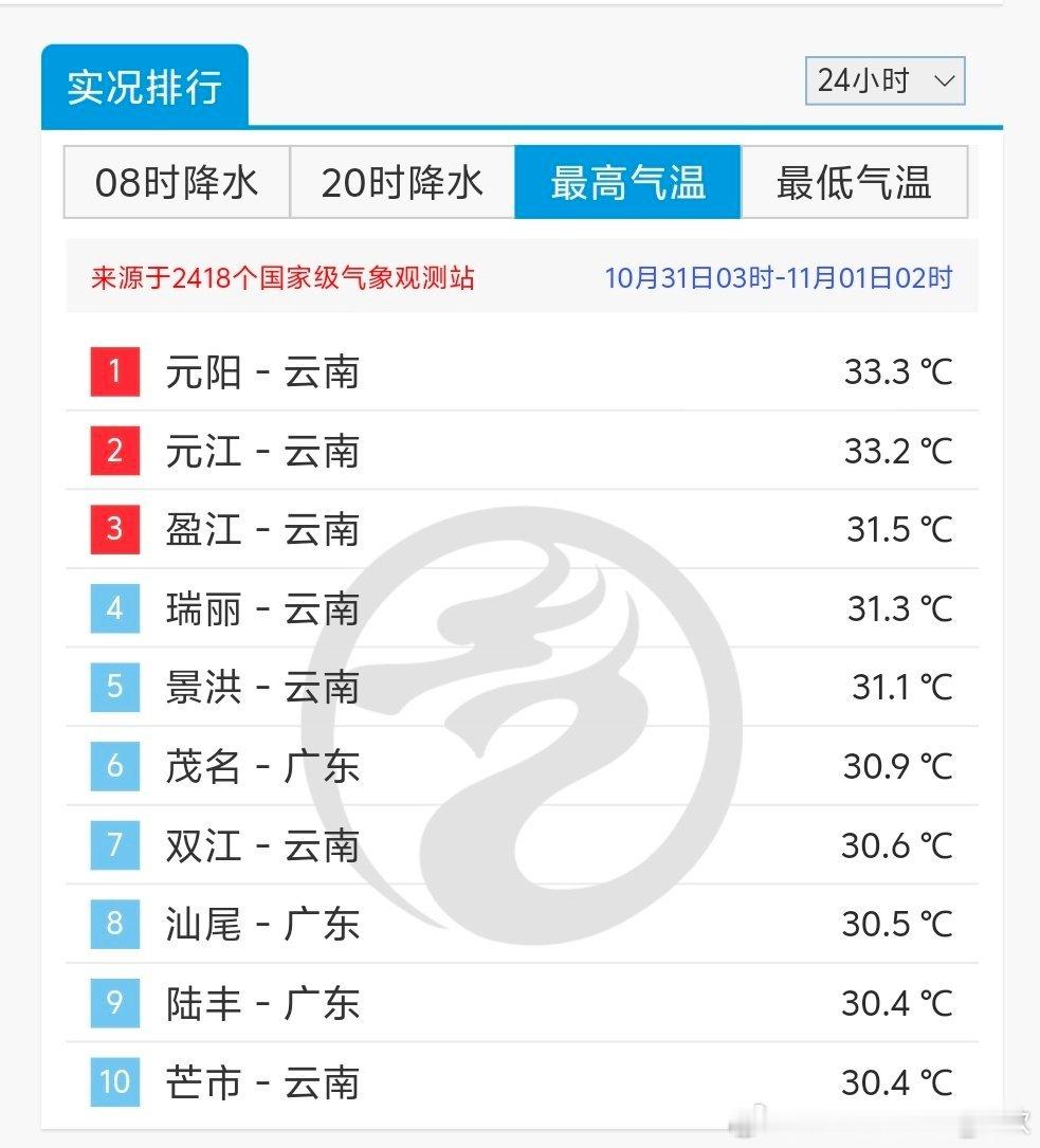 【降温】今天东北到河北山东河南多地因为冷空气影响出现4-12℃降温,云南贵州广西等地因为阴雨遮挡光照也出现降温。对比昨天下午和今天下午,东北低于0℃的范围扩大,华北以及云南20℃范围收缩。昨天最高气温榜前10,云南占据7个席位并包揽前5。今天截至14时最高,气温榜上,没有云南站点,被海南广东福建站点包揽。