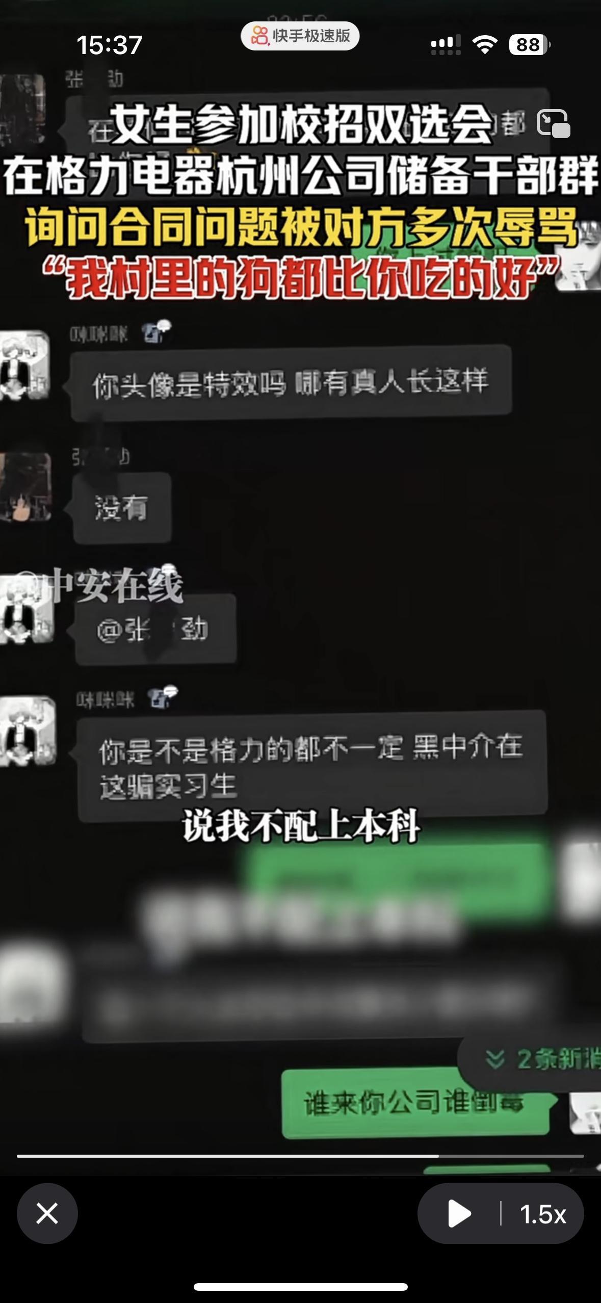 董明珠摊上事了!这不给大家解释清楚,还有人买格力的产品吗? 女大学生求职遇到格力人事,一天工作12个小时,从早八到晚八,一个月公休只有4天。有白班也有夜班,工资却只有5500 没想到询问合同问题时却被人事辱骂说我村里的狗都比你吃的好。格力这么狗眼看人低吗?格局太小了!