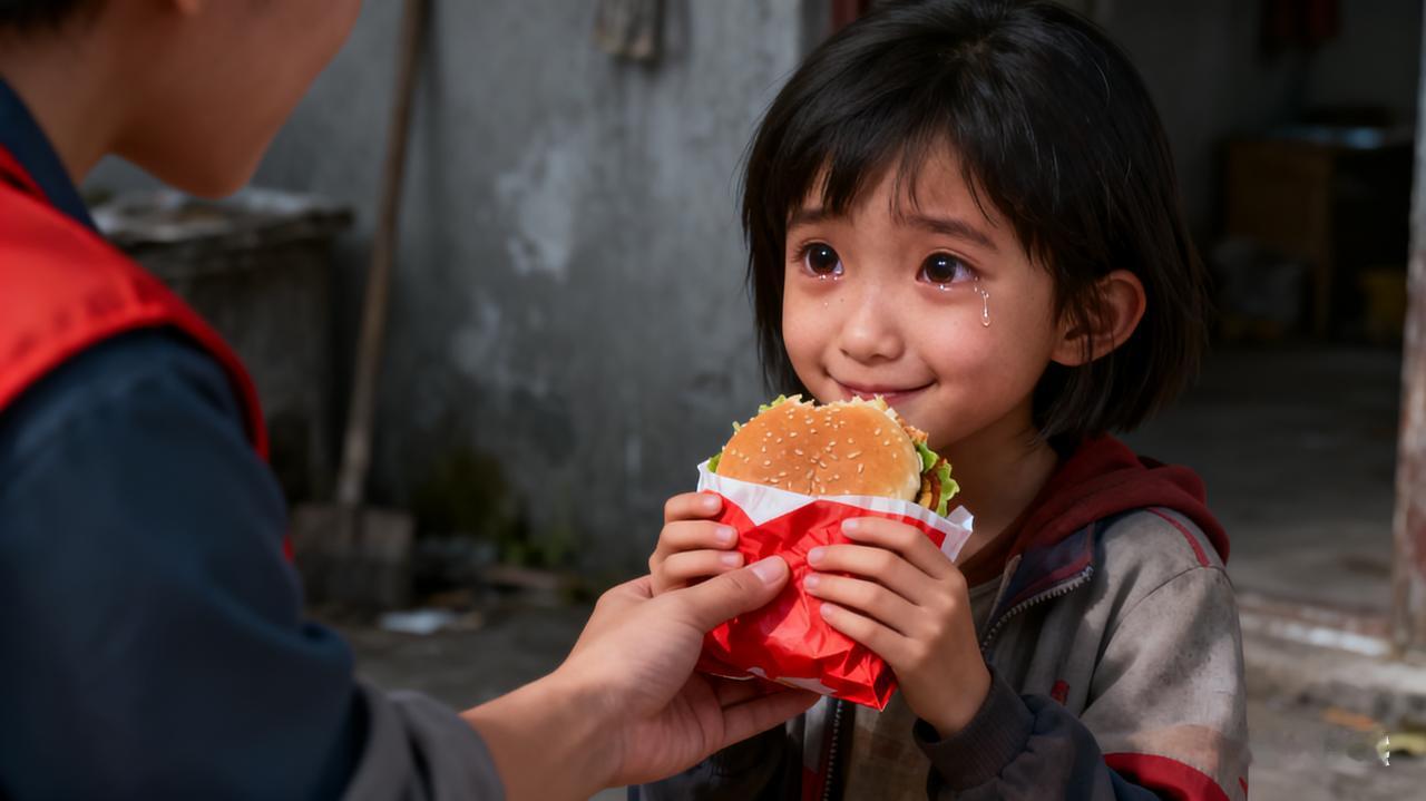 那口汉堡,是她尝过的最美味 村口的老槐树又落了一层叶,7岁的念念蹲在门槛上,手里攥着半块干硬的玉米饼,眼神追着远处田埂上爷爷奶奶佝偻的身影。两年前,父亲为救落水孩童见义勇为,却不幸溺亡;母亲不堪重负,留下一句“对不起”便杳无音信,从此,念念的世界里只剩下爷爷奶奶和这间破旧的土坯房。 这天,县志愿者协会的一行人带着米面油和学习用品来到念念家。推开吱呀作响的木门,昏暗的屋子里几乎没什么像样的家具,墙角堆着爷爷奶奶捡来的废品,念念正坐在小板凳上帮奶奶剥玉米,瘦小的身子裹在不合身的旧衣服里,见了生人,怯生生地低下了头。 志愿者们一边帮老人打扫院子,一边和念念聊天,试图驱散孩子眼中的怯懦。“念念,你长这么大,吃过最好吃的东西是什么呀?”志愿者小李笑着问道,语气里满是温柔,她本以为会听到鸡腿、蛋糕之类的答案,毕竟这是大多数孩子的最爱。 念念停下手中的动作,手指不安地抠着衣角,沉默了好一会儿,才抬起头,眼睛里闪着微弱的光,小声说:“是……汉堡。”话音刚落,在场的人都愣住了。小李追问:“汉堡呀,是不是特别香?什么时候吃的呢?” 念念低下头,声音带着一丝哽咽:“爸爸走的前一天,带我去镇上赶圩,说我考试得了奖状,奖励我的。他说那是城里孩子常吃的,很贵……我只咬了两口,就舍不得吃了,想带回家给爷爷奶奶尝,可还没到家,就听说爸爸出事了……” 她顿了顿,泪水顺着黝黑的小脸蛋滑落:“那汉堡凉了,爷爷奶奶也没舍得吃,又热了给我,我分了一点点给他们,剩下的我吃了好几天。现在想起来,还是觉得特别香,比玉米饼好吃多了。” 志愿者们瞬间红了眼眶,谁也没想到,对大多数人来说随处可见、甚至被称为“垃圾食品”的汉堡,竟是念念迄今为止尝过的最美味的食物。那两口带着父爱的汉堡,不仅是她童年里唯一的奢侈,更是父亲留给她最后的温暖印记。 小李悄悄转过身,抹掉眼角的泪水,从包里拿出提前准备的汉堡和炸鸡,递到念念面前:“来,念念,今天管够,以后想吃,我们就来看你。”念念小心翼翼地接过,小口咬下,嘴角扬起浅浅的笑,眼里却又泛起了泪光。那笑容里,藏着太多不该属于这个年纪的懂事与心酸,也让在场的每个人都懂得,平凡日子里的一口甜,对某些孩子来说,竟是如此珍贵。 需要我将这个故事改编成适合短视频配音的脚本吗?这样能更直观地传递这份感动。童年味道汉堡 树下汉堡