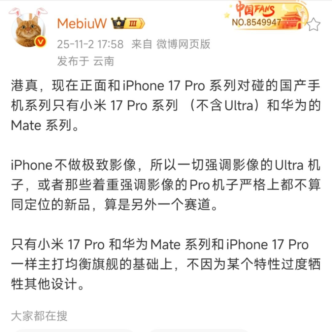 Mate主打高端商务,和iPhone不构成竞争。[馋嘴][馋嘴][馋嘴]小米才是正面硬刚。