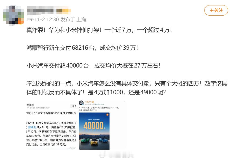 小米那成交均价,十几万的差距,给鸿蒙智行提鞋都不配,干嘛要强行关联呢?