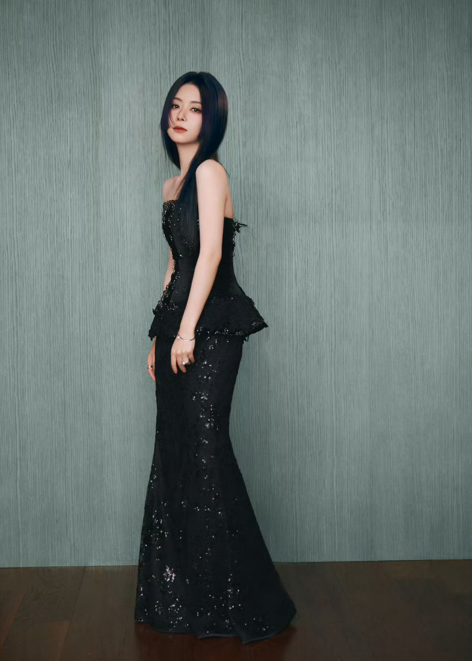 刘亦菲把死亡玫粉穿出了定制款的感觉,这种颜色普通人穿上分分钟黑三度,她居然能穿出