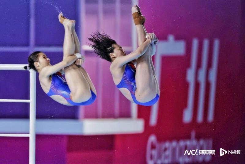 女团项目最后进行的是双人10米台比赛。为广东队出战这个项目的是全红婵/王伟莹组合以及蒋林静/谢佩铃组合。这是全红婵时隔半年再度参赛。