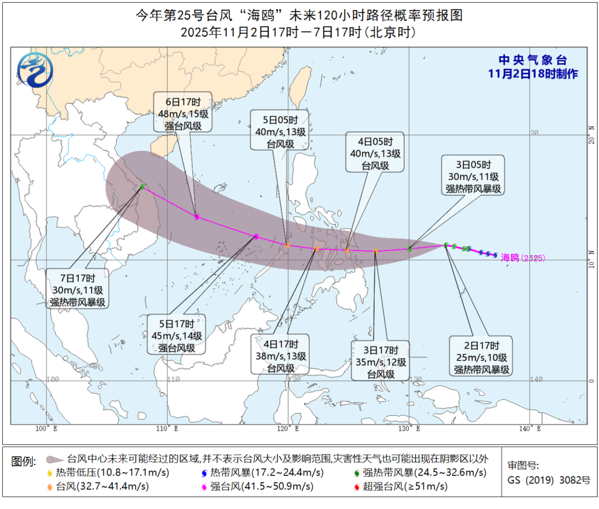 今年第25号台风“海鸥”5日开始将进入南海。欧阳翼介绍,目前预报来看,“海鸥”大概率不会登陆我国,但下周会导致南海出现大风,海南部分地区也可能出现降雨。