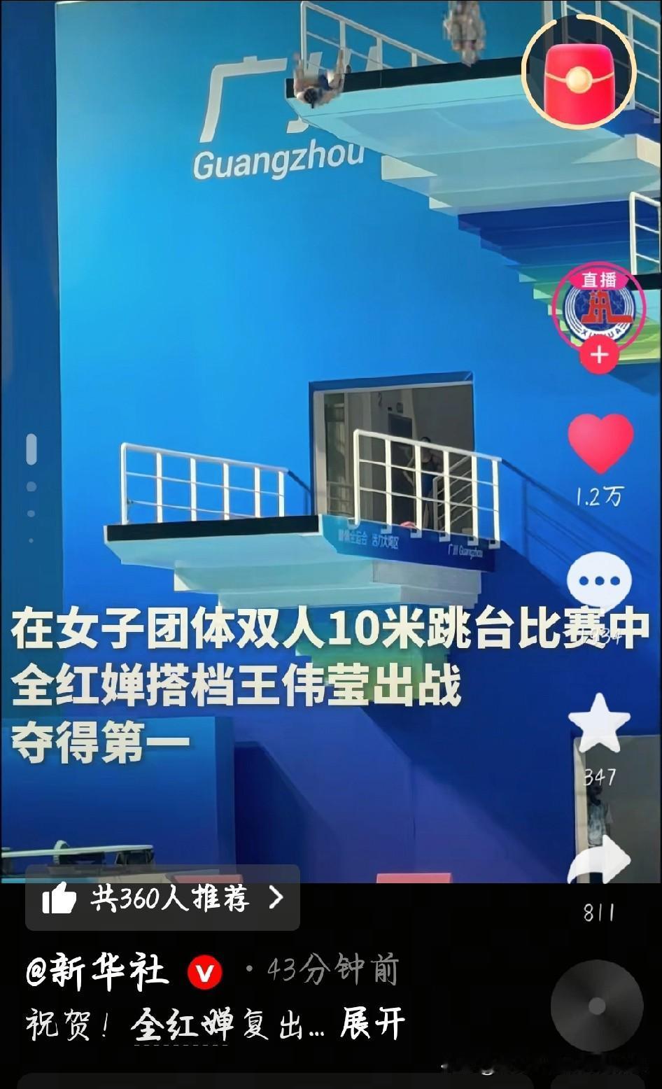 全红婵太牛了!伤好回来就拿冠军 刚刷到全红婵伤愈首秀就夺冠的消息,真忍不住喊