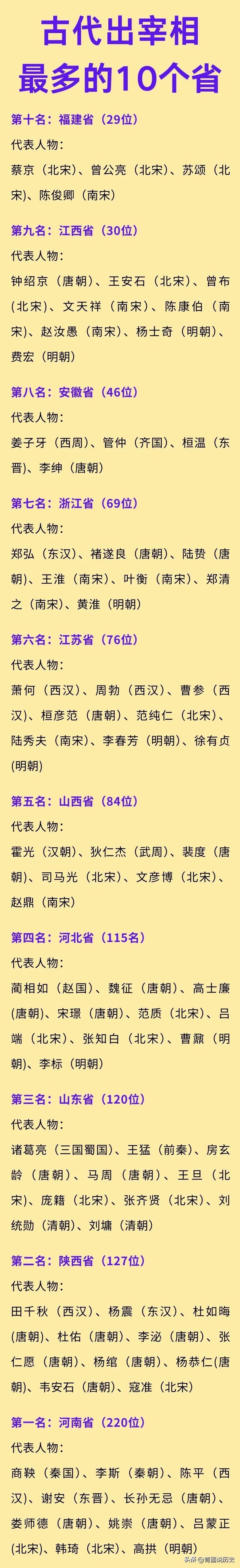 为什么福建也是出宰相最多的省份之一? 有人一定会有错误的认知,认为在我国古代,福建是蛮荒之地,实际上,这只是先秦至汉晋时期的阶段性印象。 在我国历史上,经历过多次中原向福建地区移民后的大量人才输血,直接提升了当地人的素质和文化水平。 尤其是泉州,曾经是世界第一大港,也是海上丝绸之路的核心区,所以整个福建对外商贸繁荣,积累了雄厚的财富。 而富庶之地,自然容易出人才,例如在南宋的时候,福建省的进士就占了全国的二成,进士多,宰相自然也更容易出。