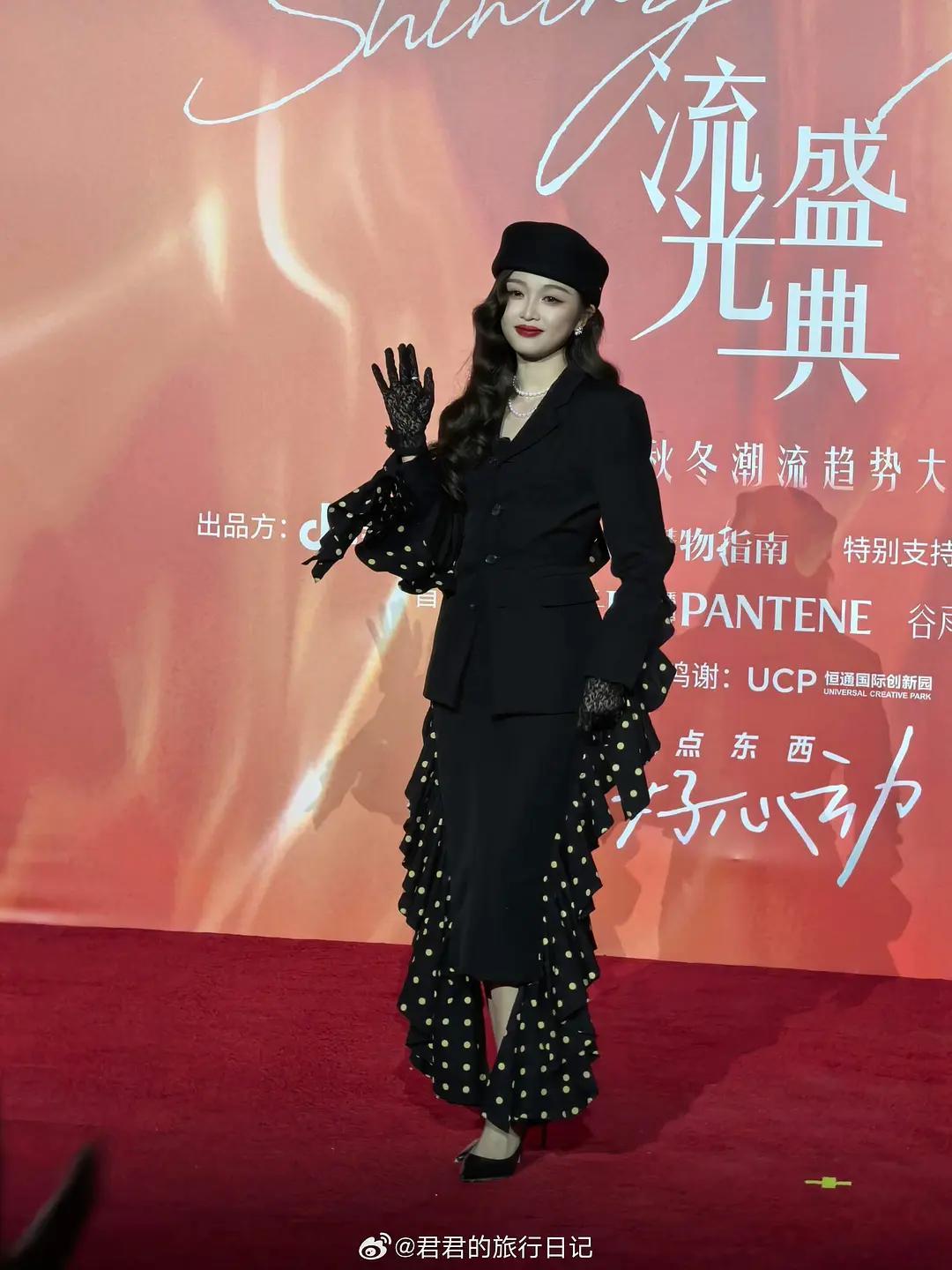 刘亦菲把死亡玫粉穿出了定制款的感觉,这种颜色普通人穿上分分钟黑三度,她居然能穿出