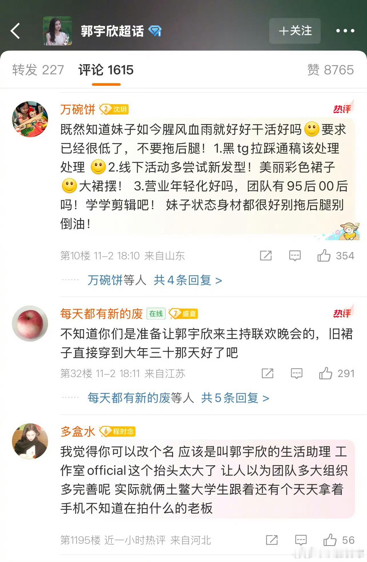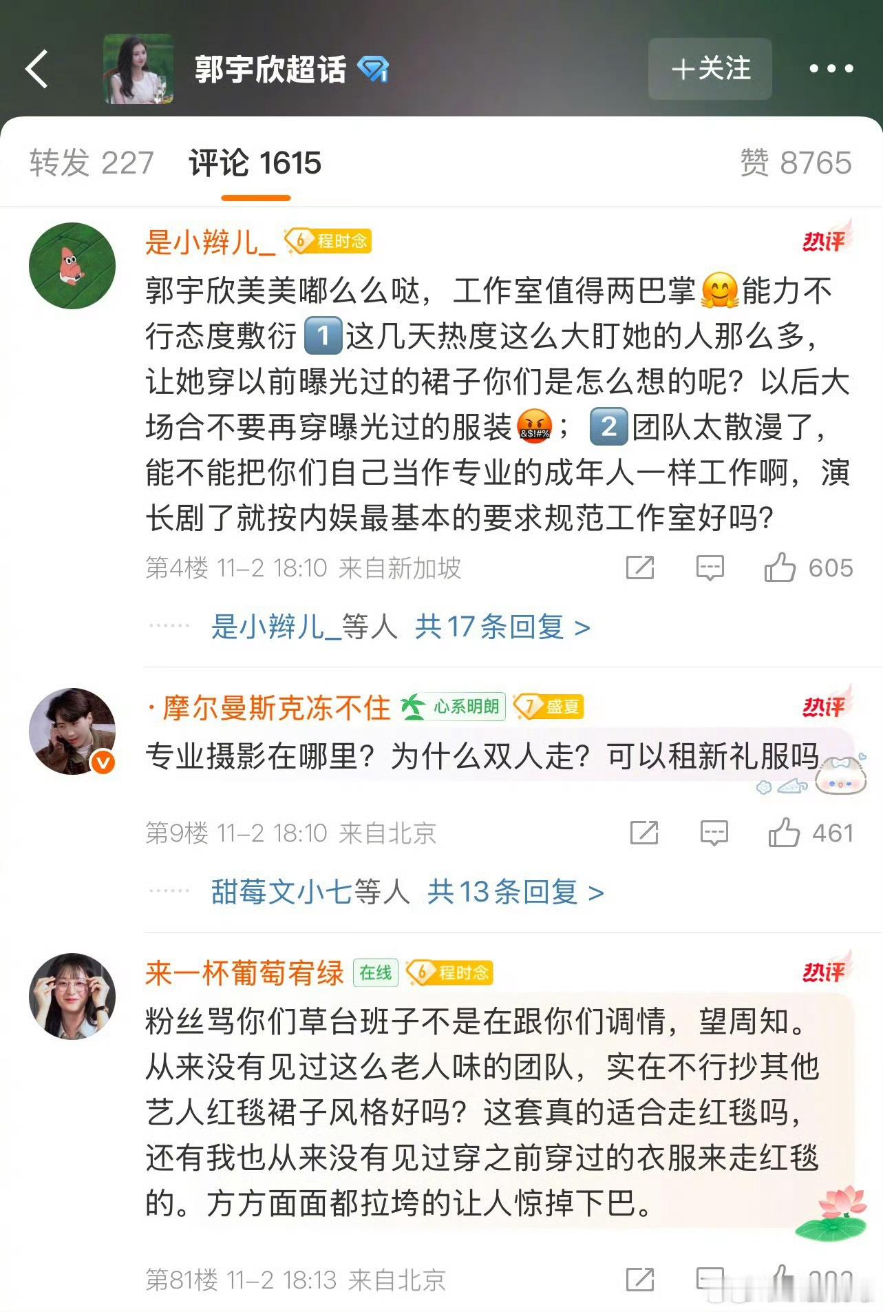 短剧顶流郭宇欣工作室被粉丝冲了上千条。一条裙子穿三次+内场无第二套+妆造拉胯+出图拉胯+双人红毯…… 横店微短剧之夜