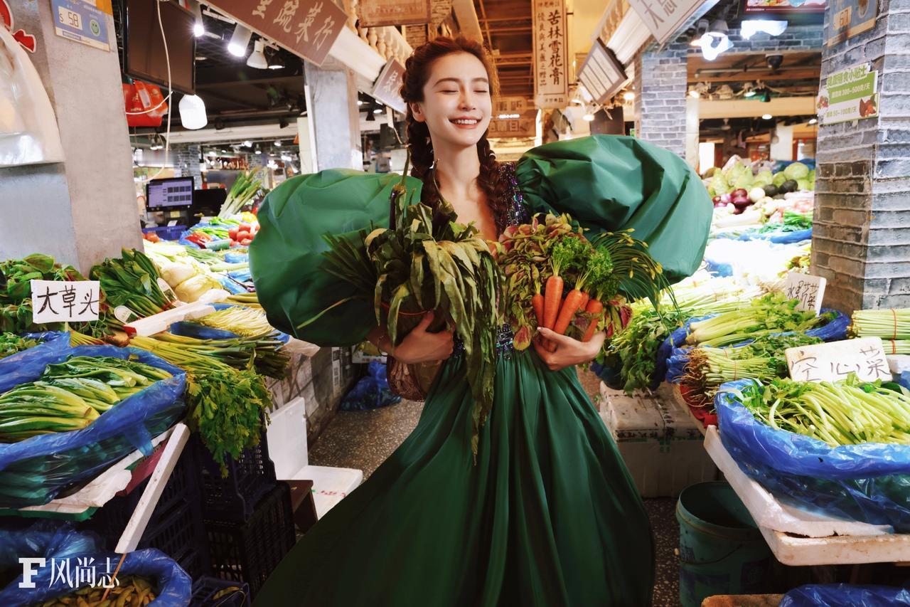 买菜和卖菜的都沉默了, 因为杨颖,菜场都有了奢华高级感, 这就是大明星的气场加持!