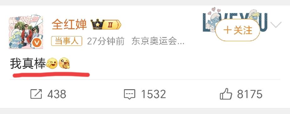 刚刚, 全红婵夺冠后发文:我真棒! [呲牙][呲牙][呲牙] 这下质疑声戛然而止, 优秀的她再一次证明了自己! 婵宝真性情的发文,像是宣告王者归来,像是受委屈后的释放,也像是对自己的一个安慰。 你真棒!真的,太不容易了!继续加油!支持你的永远会在你背后!
