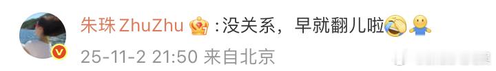 朱珠回复翁青雅没关系 11月2日,翁青雅道歉后,朱珠评论回复:“没关系,早就翻儿啦[允悲][抱抱]”。