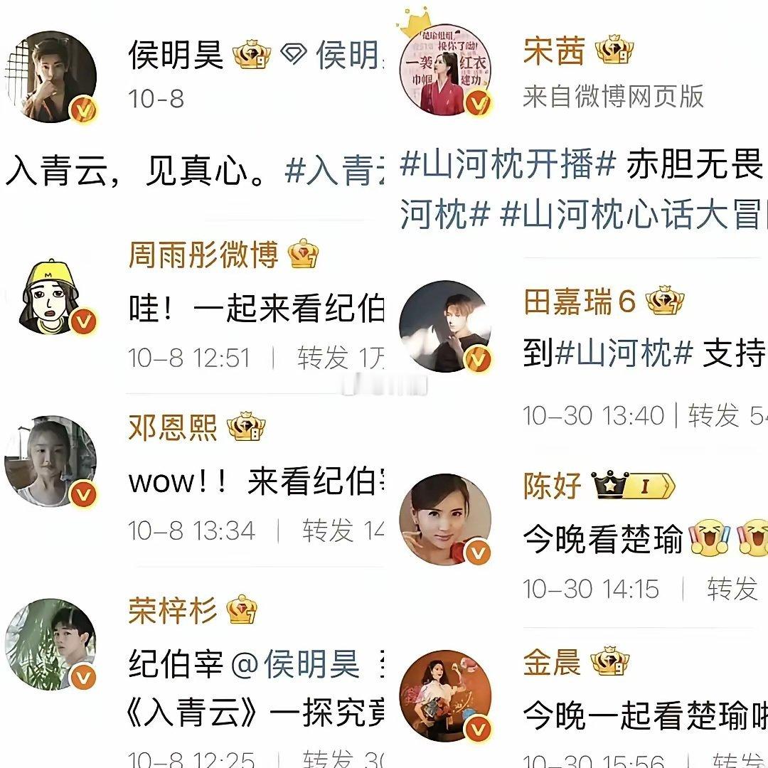 嘉宾直接分成两派,一派力推侯明昊新剧《入青云》,另一派则为宋茜的《山河枕》宣传,录制时的小团体到现在还在明着站队。