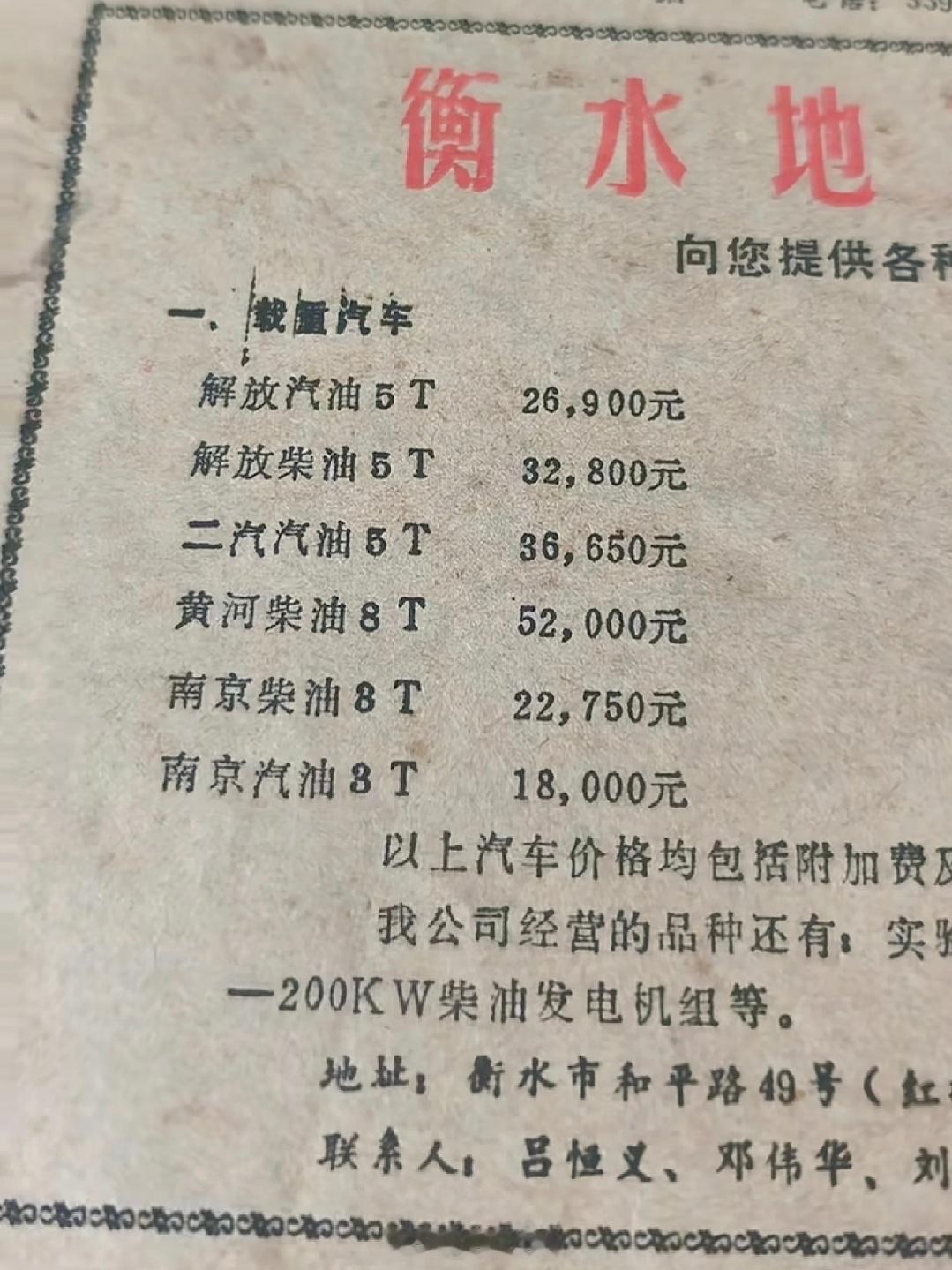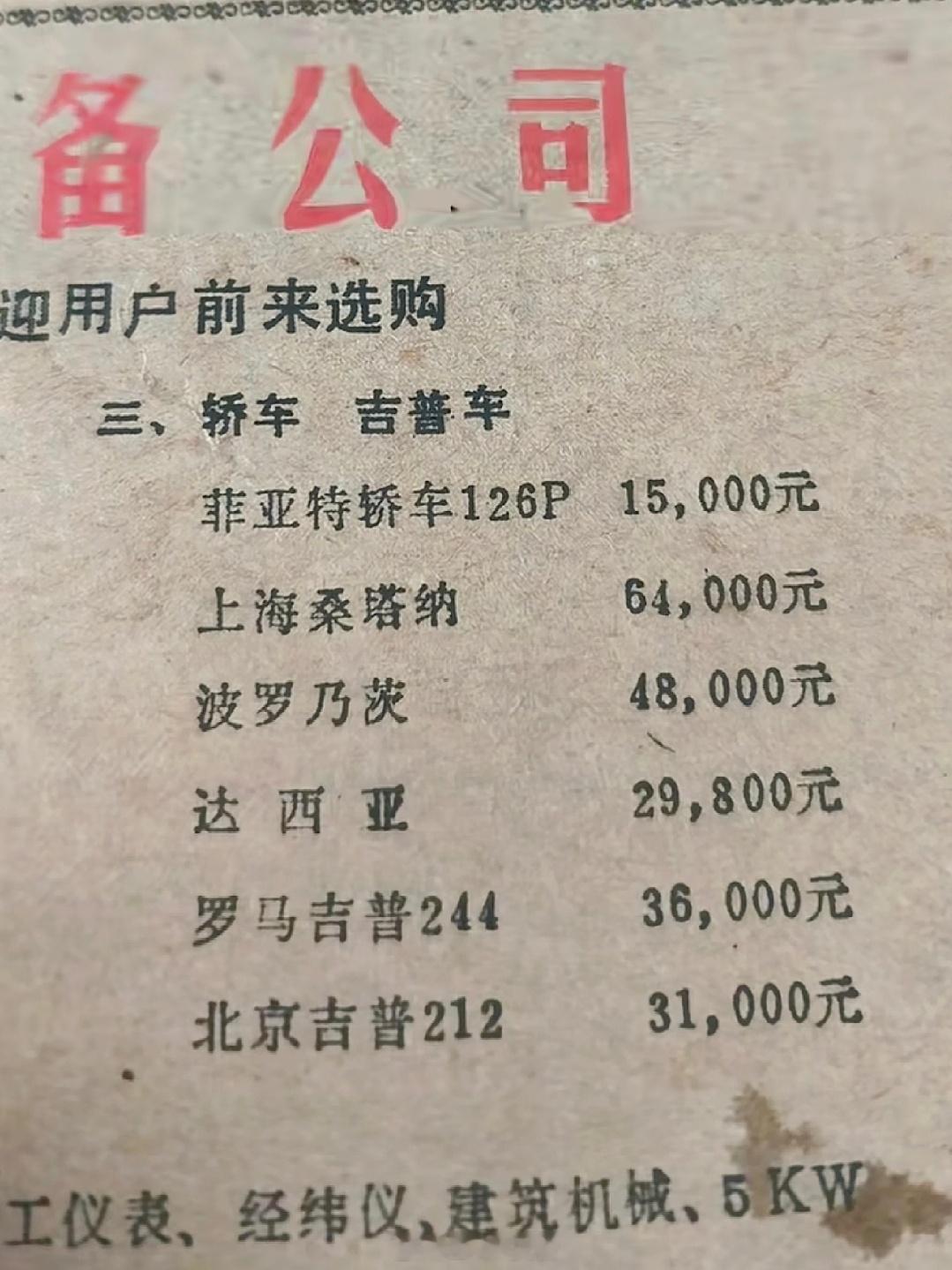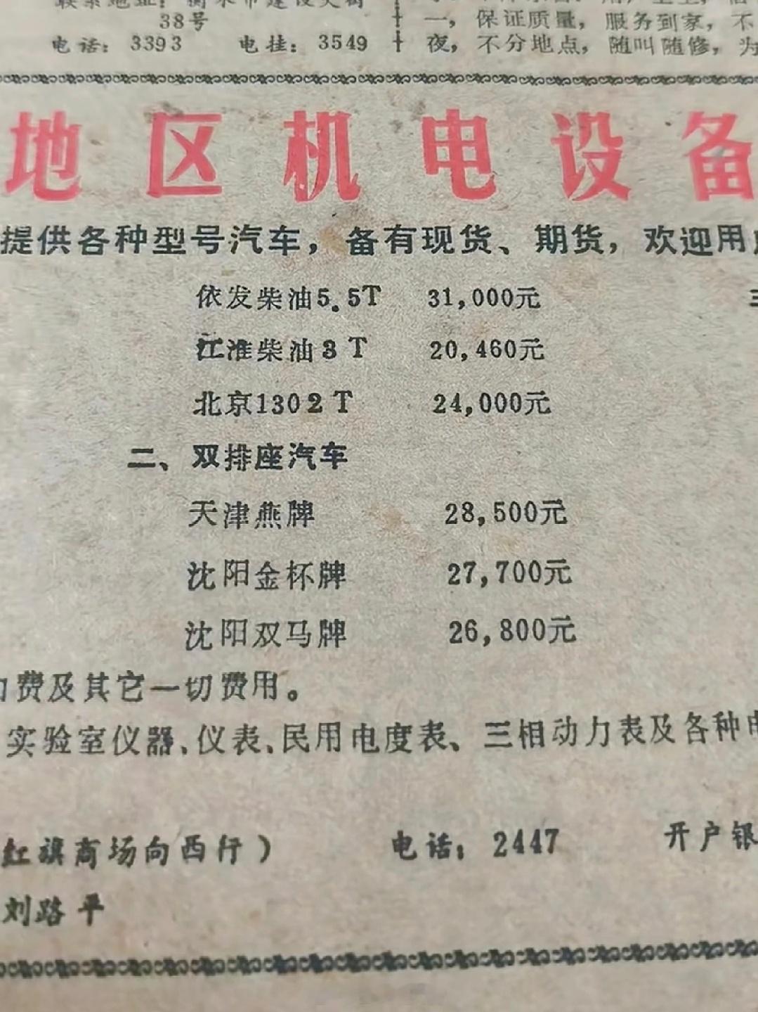 1986年衡水日报上的汽车价格