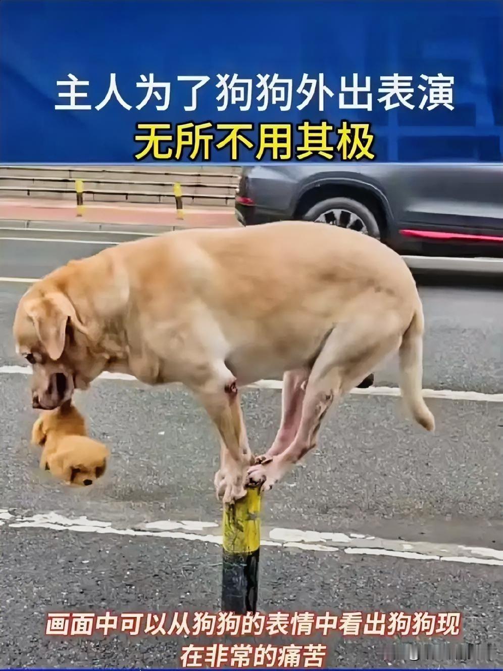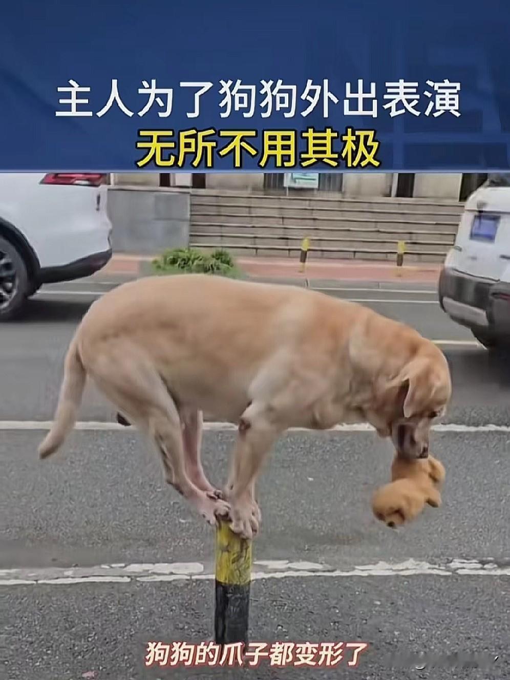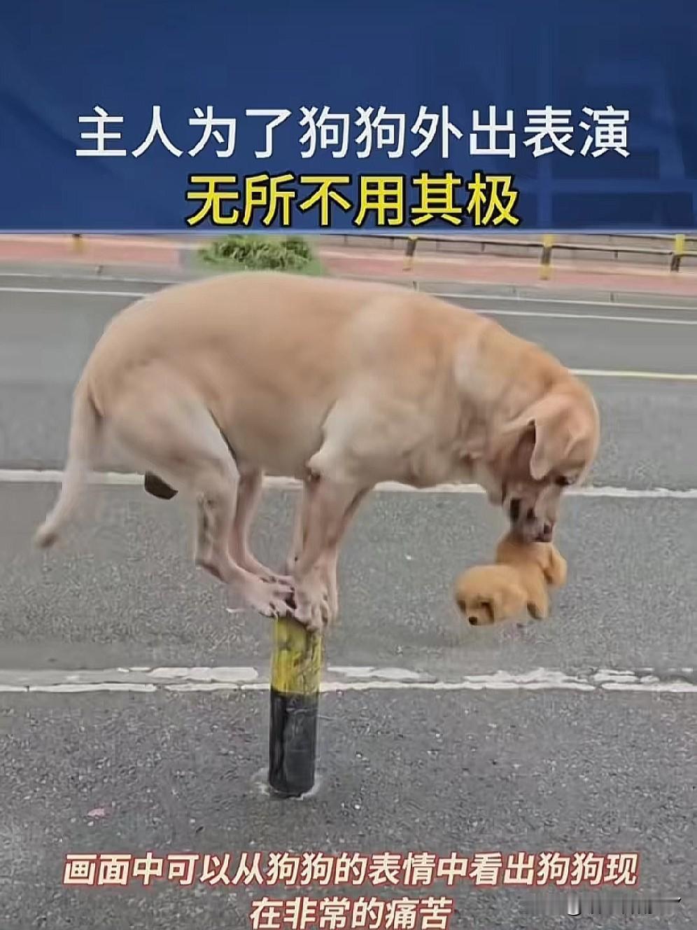 刷到拉布拉多被迫表演的画面,心像被揪成一团。 它明明怕的浑身颤抖,却依旧努力往那根细铁柱上爬,它的爪子早已磨破了皮、变了形,沾着血印,可主人还是每天让狗狗练习杂技。 从画面里能看到狗狗非常痛苦的神情,每动一下身体都在颤抖,却不敢停下,实在太让人心疼了。 它哪里懂得什么赚钱的道理?只是以为这样做能让主人开心、满意。 它本应在草地上欢快追球的爪子,如今却被训练的伤痕累累;本应亮晶晶的眼睛,现在满是恐惧和讨好。 为了让狗狗外出赚钱,有些主人用尽了残忍手段,完全不顾狗狗的痛苦。 用狗狗的痛苦来换钱,这哪是什么表演,分明就是虐待!拒绝动物表演,别让爱沦为伤害!