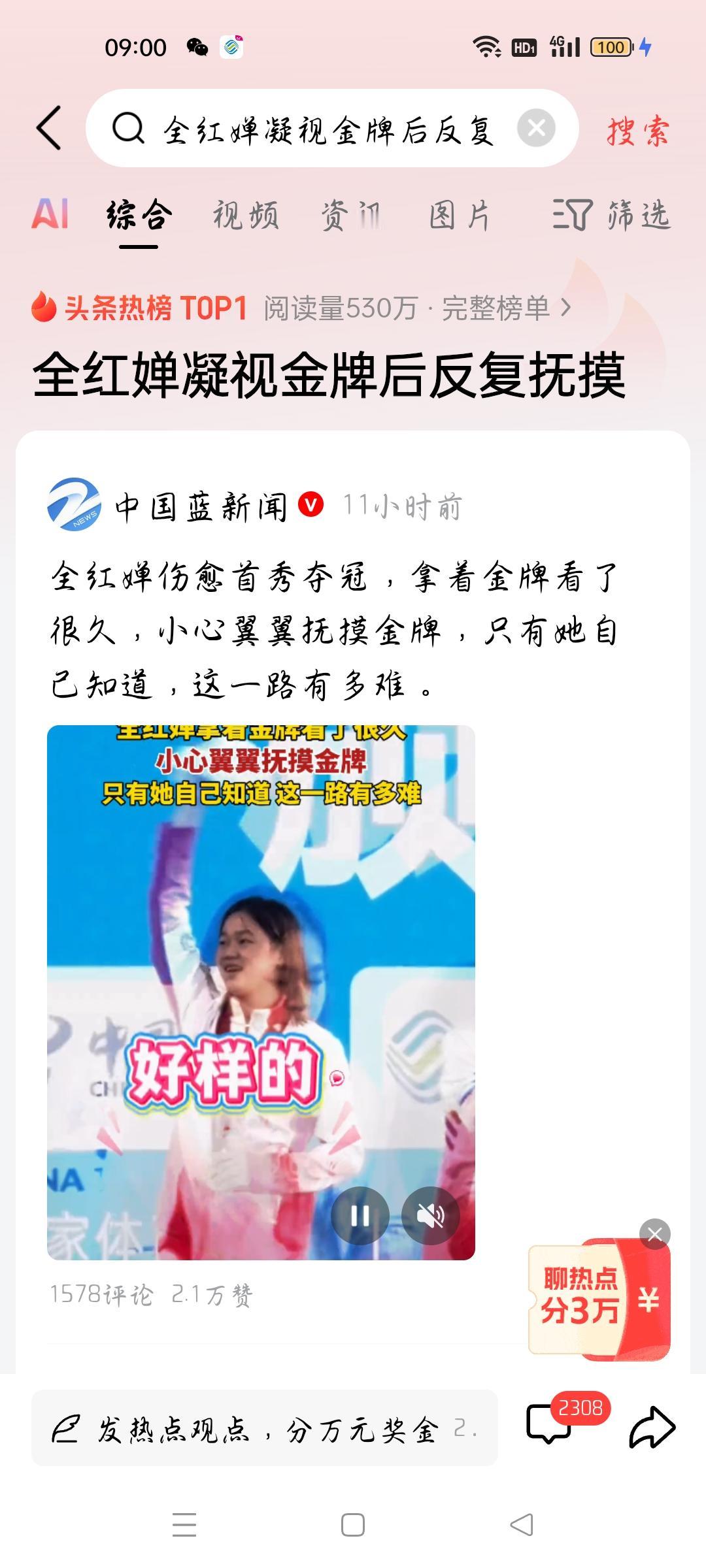 全红婵凝视金牌后反复抚摸,我想说 据中国蓝新闻报道,全红婵伤愈后首秀夺冠,拿着金牌看了很久,小心翼翼抚摸金牌,我想说,自从去年奥运会结束后,全红婵一直在养伤,不少球迷问道,全红婵到了哪儿?一个运动员受伤了,不能参加比赛,对运动员是多么痛苦啊!现在可以参赛了,而且拿到了金牌,时隔一年多,熟悉的金牌又到了全红婵手中,她激动,她反复抚摸,说明了她珍惜机会,珍惜荣誉。希望她在以后的比赛中再创辉煌。各位条友认为呢?