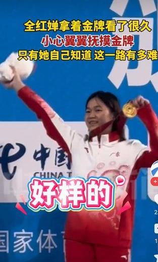 全红婵在全运会上又摘得一金牌,颁奖现场,“全妹”拿着金牌看了又看,摸了又摸。外人看到的是荣誉、是“第一”,也只有全红婵自己清楚这枚金牌来的多么不容易。 这是她受伤痊愈后的首次大赛,毕竟是参加过奥运会大场面的选手,实力在那摆着,全运会轻轻松松就拿到了金牌。但老话说,台上十分钟,台下十年功,没有十几年如一日的训练,没有那么多汗水和泪水的付出,哪有这沉甸甸的荣誉呢? 希望全红婵继续保持,继续为国争光!