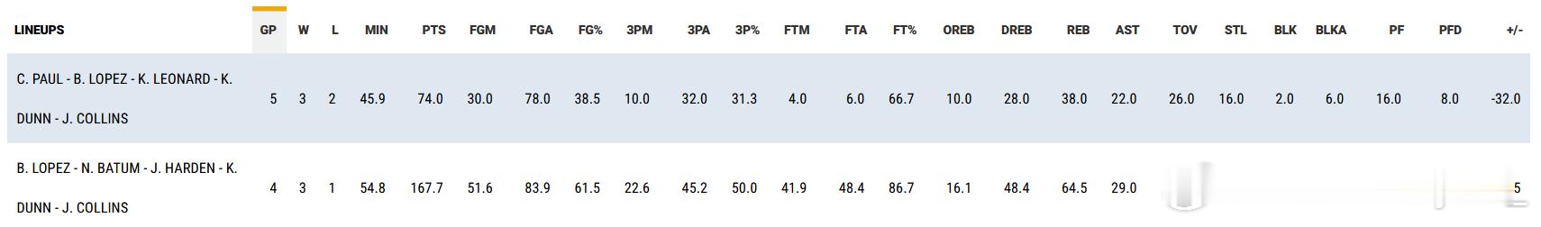 (PS:唉这个ID水印怎么这么坏啊把下面一排数据全部挡住了,校正一下:登-邓-巴-柯-祖这套一三节(打醍醐改为二四节)衔接段阵容在4场合计17分钟的小样本中百回合净胜对手64.5分,与上面那个净负32.0分的形成鲜明对比,而这正就是快船目前两套确定的衔接段阵容,令人感叹)