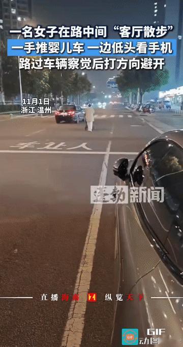 “这是把马路当客厅了?”浙江温州,一名女子一手推着婴儿车,一边低头沉浸于手机屏幕,悠然地在车来车往的大马路上“散步”。身旁疾驰而过的车辆,纷纷被迫打方向避让,上演了一场现实版的“马路惊魂”! 来源:【蓬勃新闻】 从视频中看到,这条道路本身还是比较宽阔的,但这女子不知出于什么心态,竟然推着婴儿车走在了马路的中间,她看起来非常悠闲,更让人无语的是,她还一边走一边低头看手机,丝毫不顾及她此刻的处境,也不关心周围飞驰而过的车辆! 因为此时已经是晚上了,天本来就暗了很多,纵使有路灯和车灯,但如果一个稍不留神,司机没有反应过来的话,这后果可是不敢想象的! 最令人后怕的,是那位女子全程表现出的“坦然”。她似乎笃信一个“潜规则”:司机一定会看到我,一定会避让我。这种将自身安全完全寄托于他人责任心的行为,无异于一场危险的“信任绑架”! 对于司机而言,这突如其来的“移动路障”是一场严峻的考验。他们的每一次紧急避让,都伴随着风险:可能与旁车刮擦,可能为躲避而撞上护栏,甚至可能因急打方向而导致车辆侧翻! 这位女子的“心安理得”,是建立在无数司机“心惊胆战”的基础之上的。她手中的手机,不仅屏蔽了外界的危险,也屏蔽了她作为交通参与者最基本的责任意识! 更让人揪心的是婴儿车里的孩子。他无法选择,无法反抗,只能被动地置身于母亲亲手营造的危险境地之中! 母亲的低头,仿佛为孩子的世界按下了一道“静音键”,同时也关上了安全的防护门! 一旦发生任何意外,幼小的生命将承受最沉重的代价。这份疏忽,是任何后悔都无法弥补的! 马路是公共空间,不是私人客厅。生命没有彩排,事故不会重来。别再让那小小的屏幕,成为横亘在你与安全之间的“第三者”! 当我们放下手机,抬起头颅,看到的将不仅是前方的路,更是对生命的敬畏与责任!