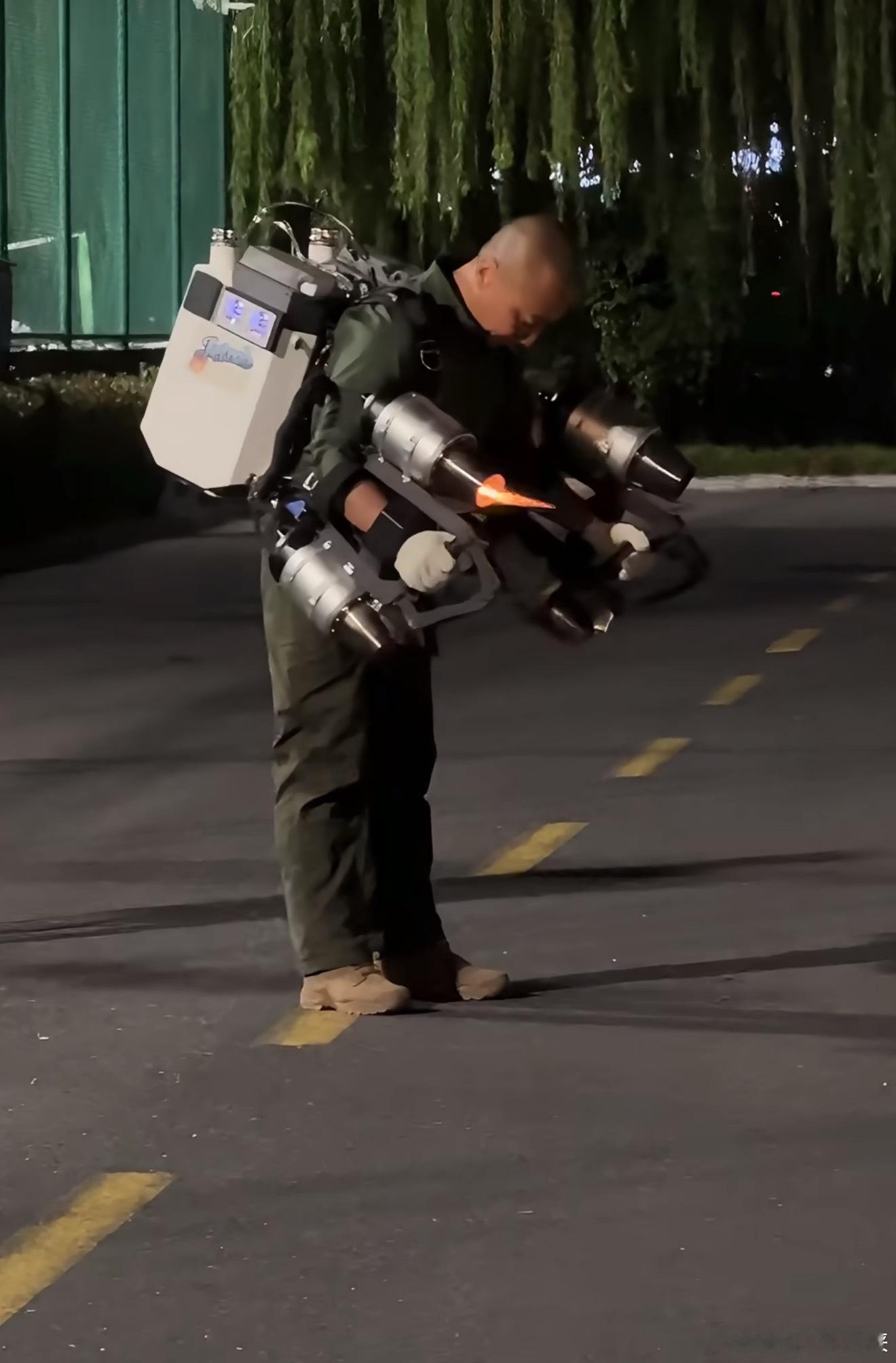 视频里研发人员背着这装备,在晚上这一起飞简直太拉风了吧!