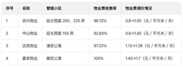 重点培育并指导合阳居民区成为示范典型,依托“党建引领+双业红+三位一体”机制,率先实现4个小区的调价全覆盖。各小区在街道指导下根据自身情况制定个性化方案,对于老旧售后公房小区,采取“先服务提升、后价格调整”策略,以可视化变化赢得居民认可;对混合型社区,则采取“先易后难、分步突破”策略,从共识度高、基础好的小区率先突破,逐步化解复杂议题。