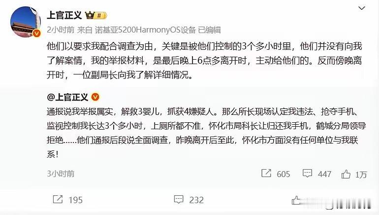 群众举报基本属实,警方根据线索解救3名婴儿。但是进行举报的群众却被“配合调查”3个小时,上厕所也不准。可能在一些人眼里,上官正义这类人是属于无事生非的“刁民”,不务正业,太过热心了。[笑哭]