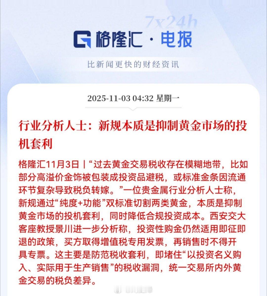 行业分析人士:新规本质是抑制黄金市场的投机套利金价