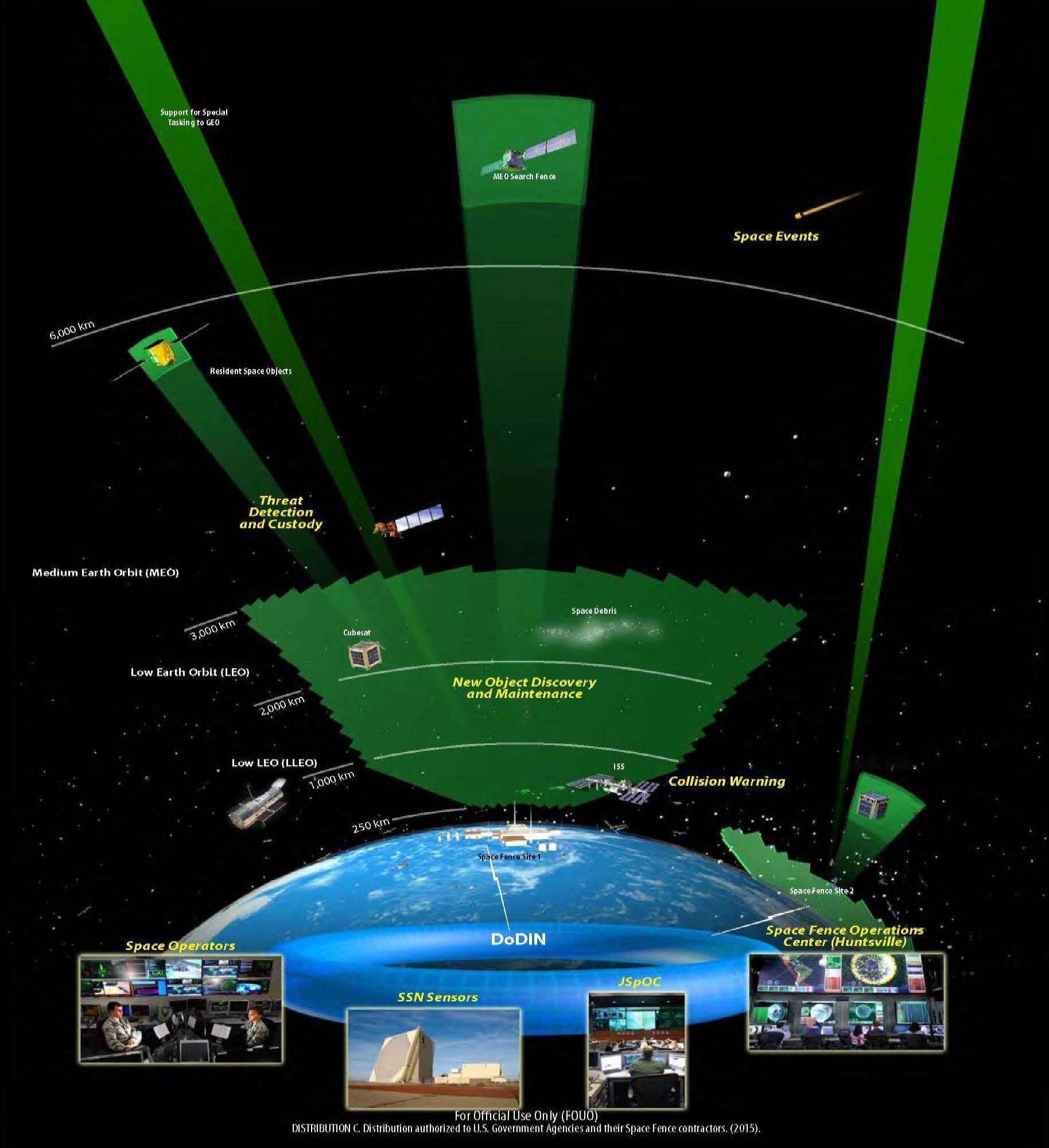 全天候、持续监视能力;可同时追踪多个空间目标;在低轨道具备极短反应时间;可实时生成高分辨率空间态势图像。