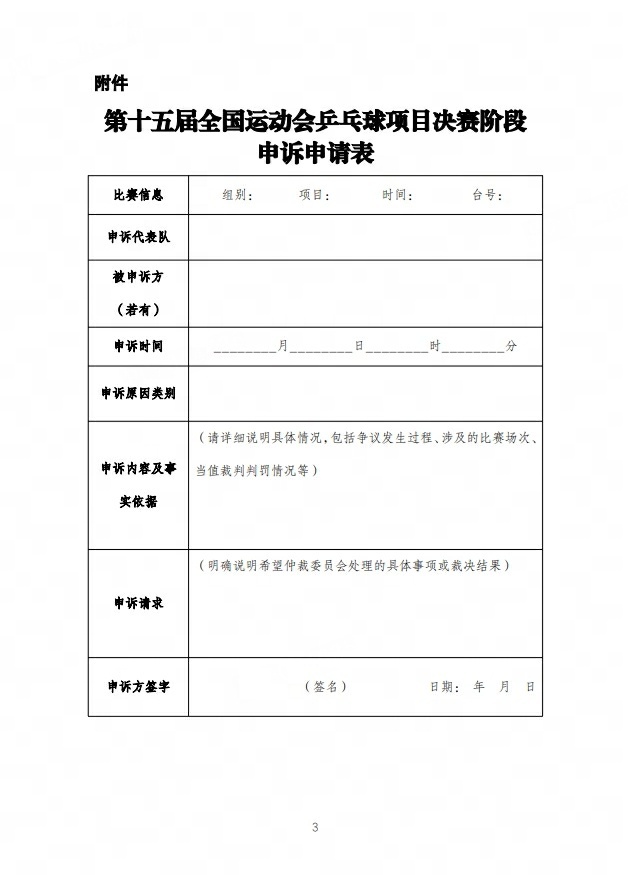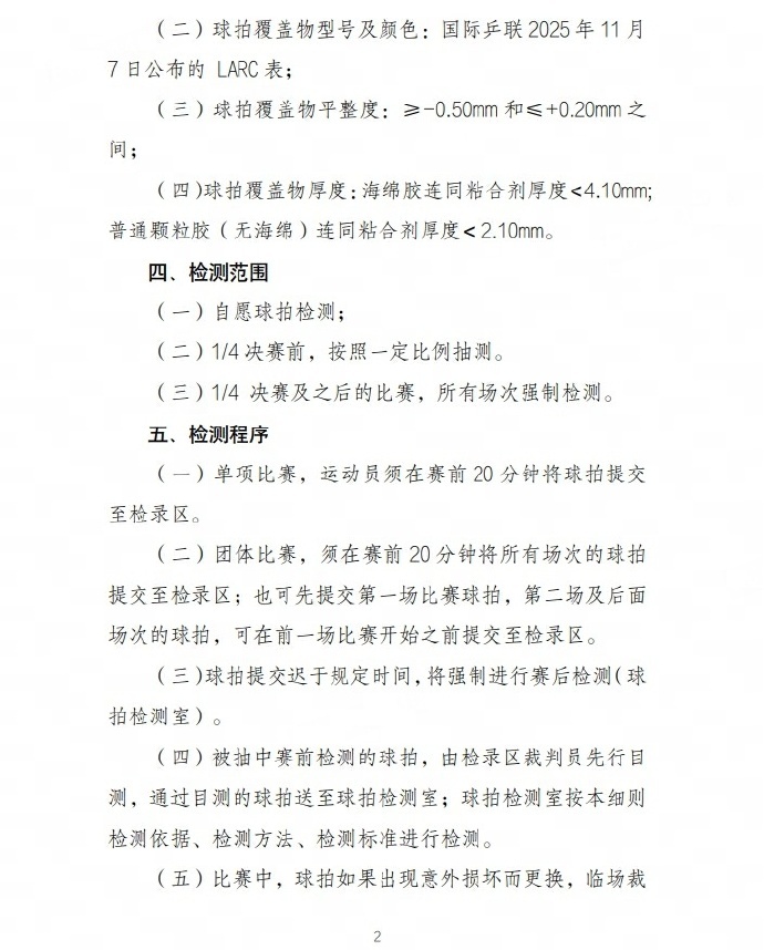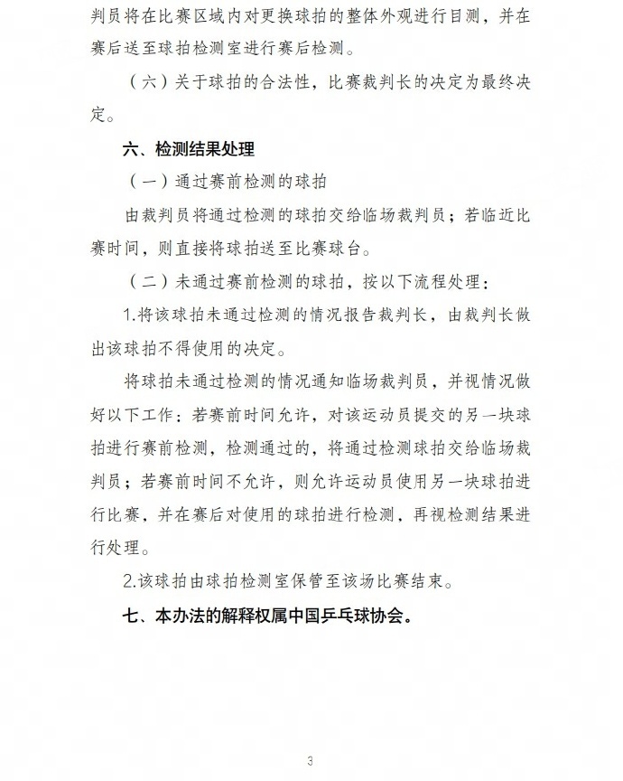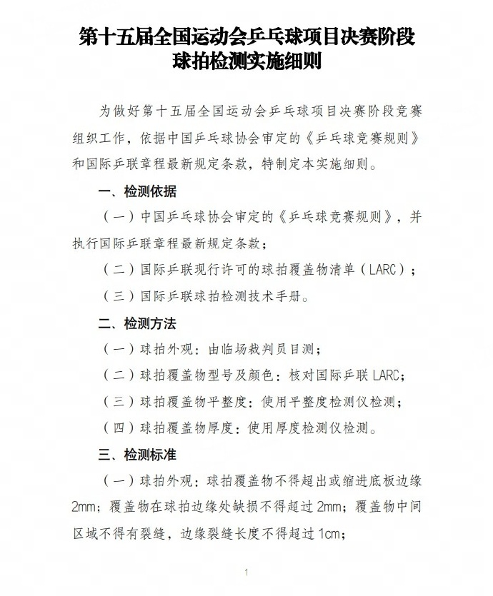 全运会乒乓球项目球拍检测细则全运会乒乓球项目申诉办法