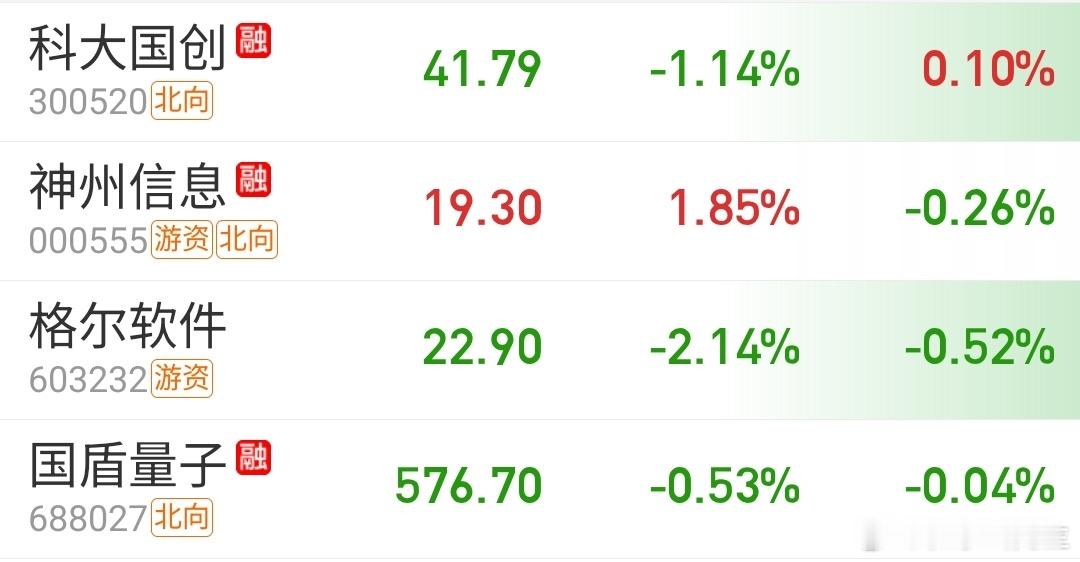 神州信息 科大国创 格尔软件 国盾量子a股股票