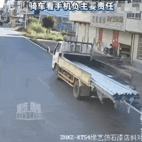 骑行看手机,自作自受,害己害人 俗话说一心不能二用,要是用了十有八九就得出事,骑行看手机算一心二用吧,两者是矛盾结合体,你看路看不了手机,看手机就看不到路。 视频中一辆货车载着槽钢不知何原因缓缓停在路边,虽然说算违停,但是这种停车方式一般人都有。谁知道刚停下,后面一男子骑辆电动车直接撞上了,再一细看原来男子在看手机。这下撞的不轻,交警一来判定骑行男子负主责,货车次责。骑行男子就不说了就是活该,货车司机虽然有点冤,但是谁让他违停了。 所以从以上案例可以给我们骑车爱看手机的小伙伴敲响警钟,别认为看一次没事,两次没事,当把一件事做成习惯后,指定哪一天就会出事。总看手机的危害 玩手机的坏毛病 骑车危险行为