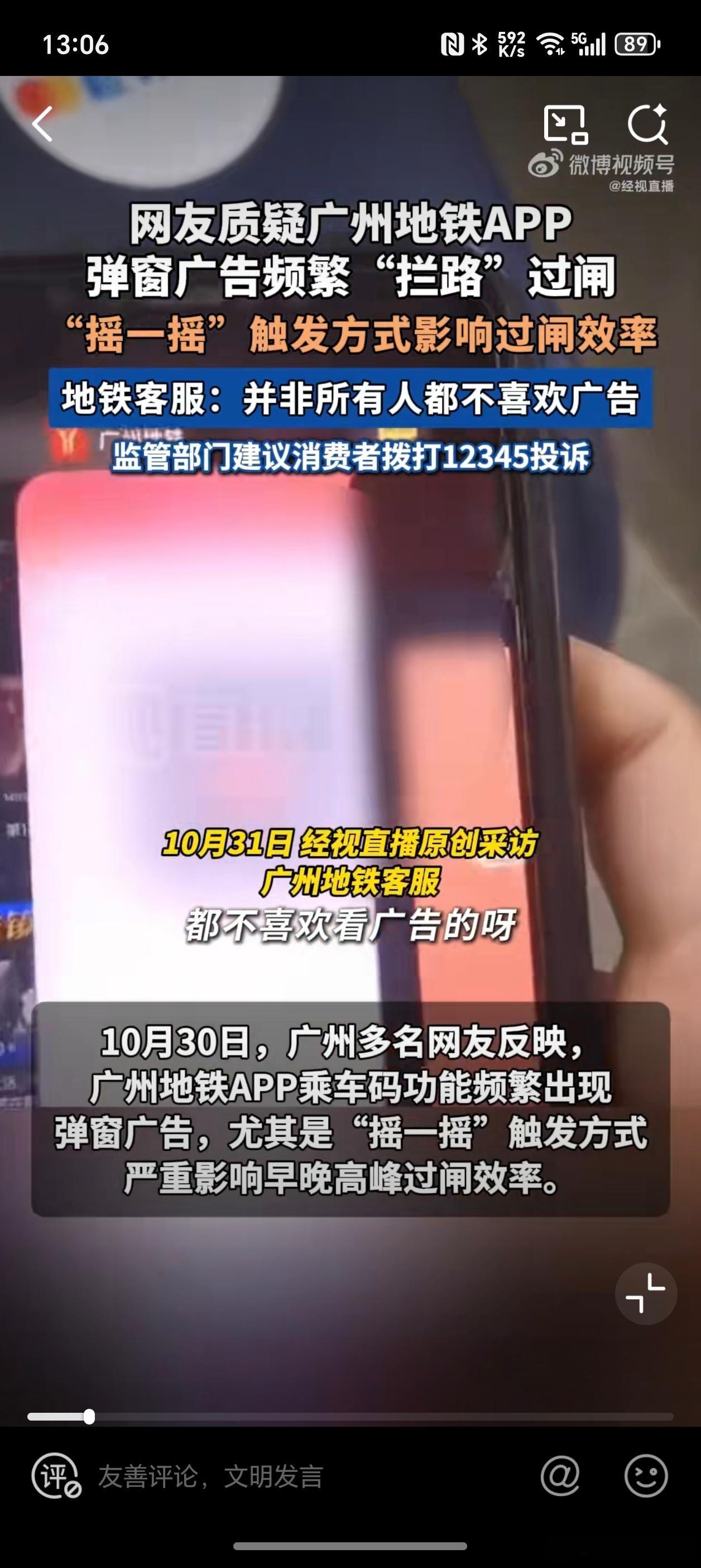 广州地铁回应APP乘车码频繁弹窗广告“但是不是每个人都不喜欢看广告的呀”,这真的是从地铁客服口中说出的话吗?[摊手]